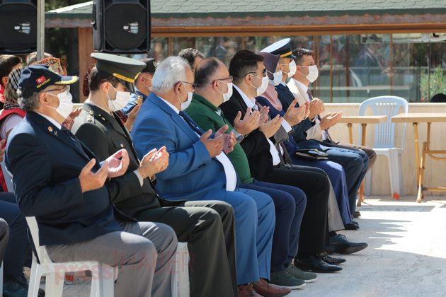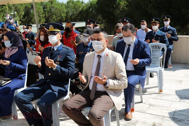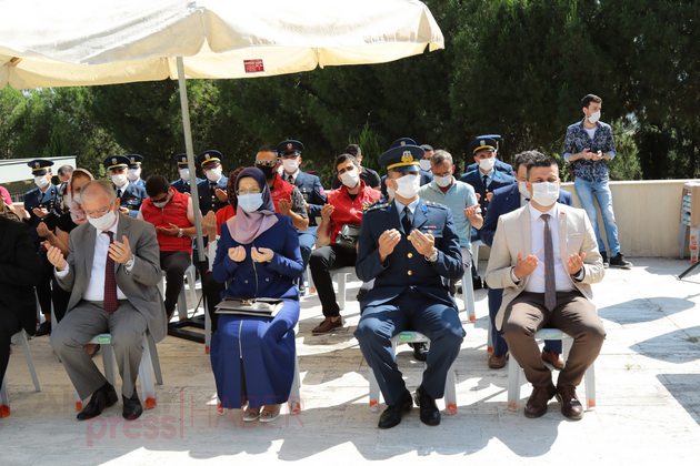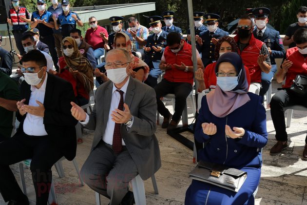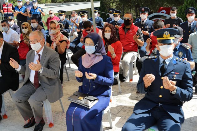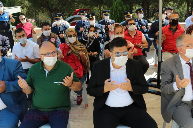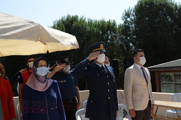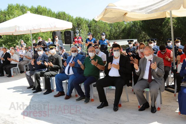 Saygı Duruşu ve İstiklal Marşı’nın eşliğinde Türk bayrağı göndere çekilirken ardından Kur’an-ı Kerim tilaveti okundu. Akhisar İlçe Müftüsü Mahmut Sami Türkmenoğlu’nun şehitler adına dua etmesi ile programı tamamlandı.