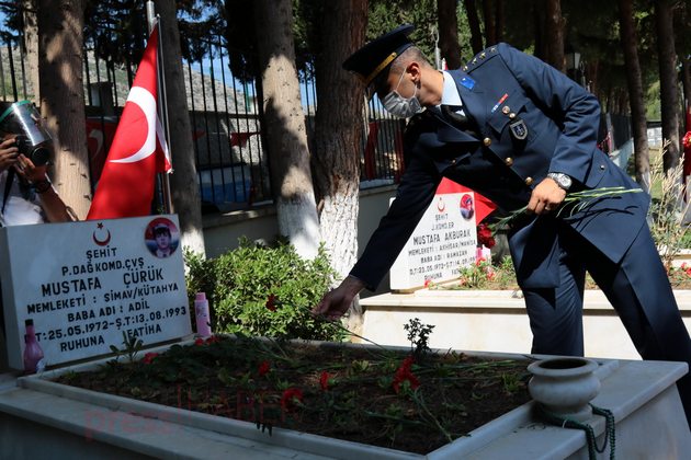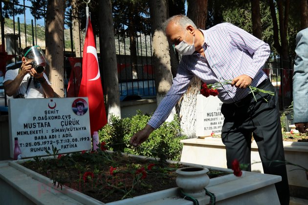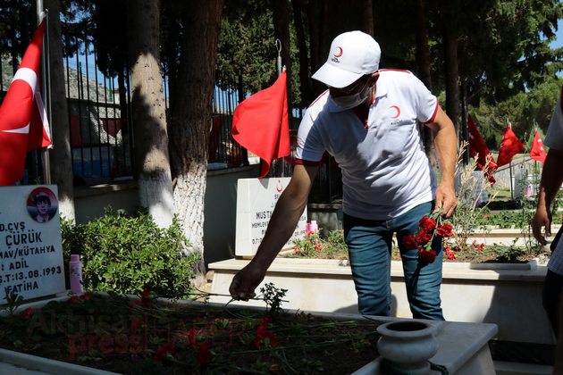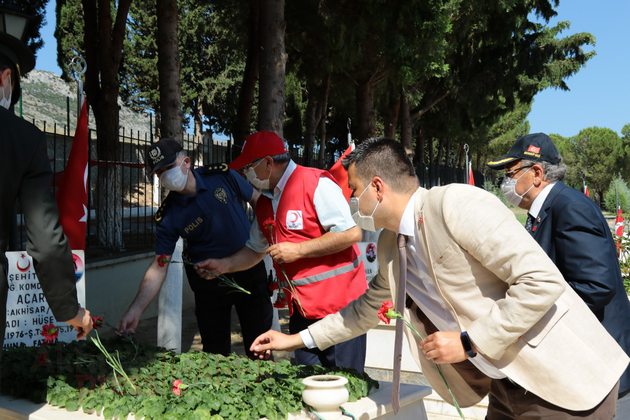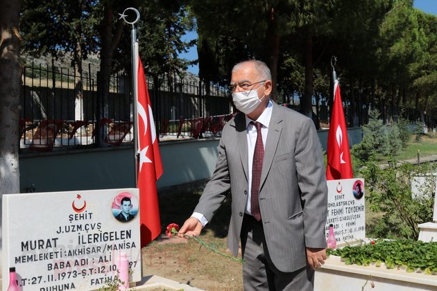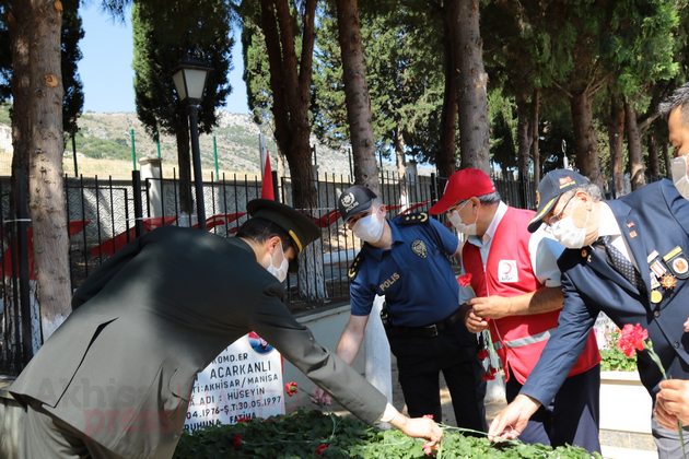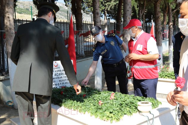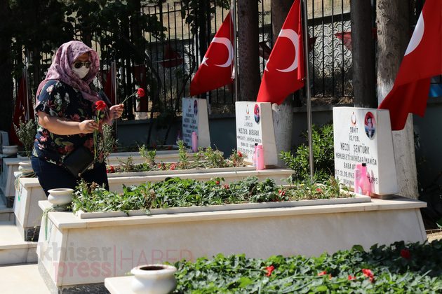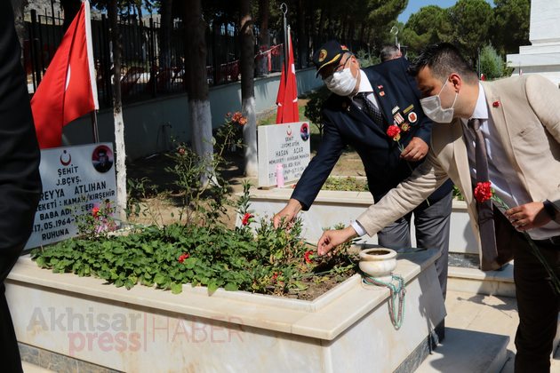 Ardından Akhisar Kaymakamı Sabit Kaya, Garnizon Komutan Vekili Hava İstihkam Yüzbaşı Yasin Acur, Akhisar Belediye Başkan Vekili Ozan Kıvrak, Akhisar Cumhuriyet Başsavcısı Tunay Pulça, daire müdürleri ve amirleri ile siyasi partilerin ilçe başkanları, sivil toplum kuruluşlarının temsilcileri, şehit aileleri ve vatandaşlar şehitlerin mezarlarına karanfil bıraktı.