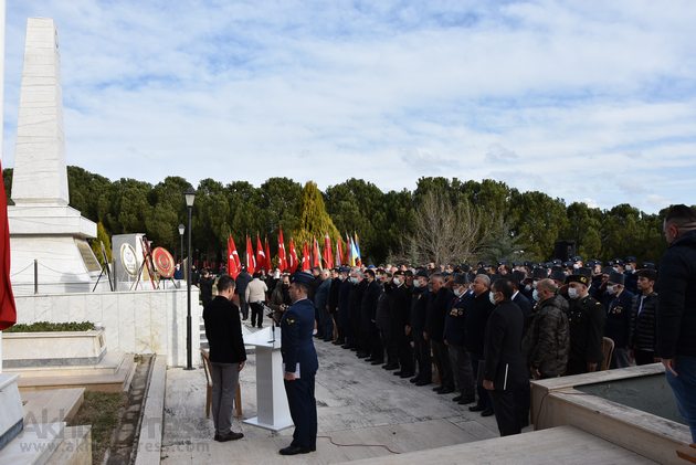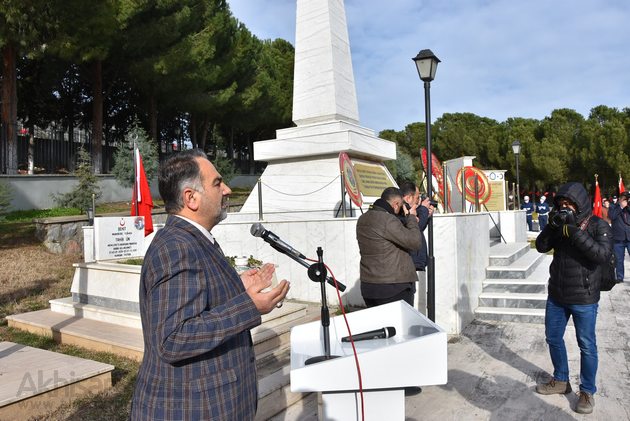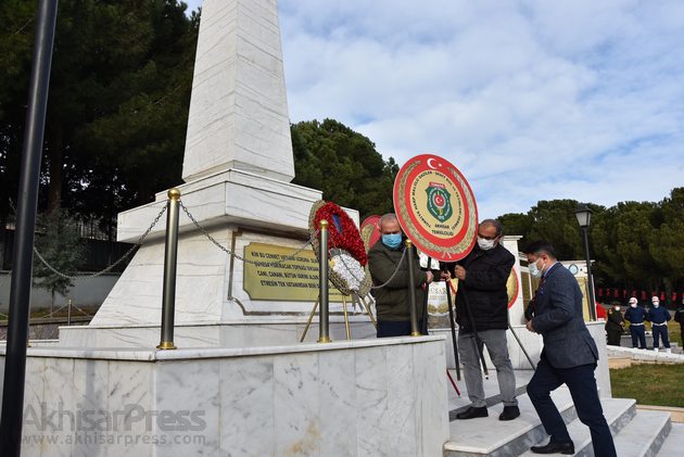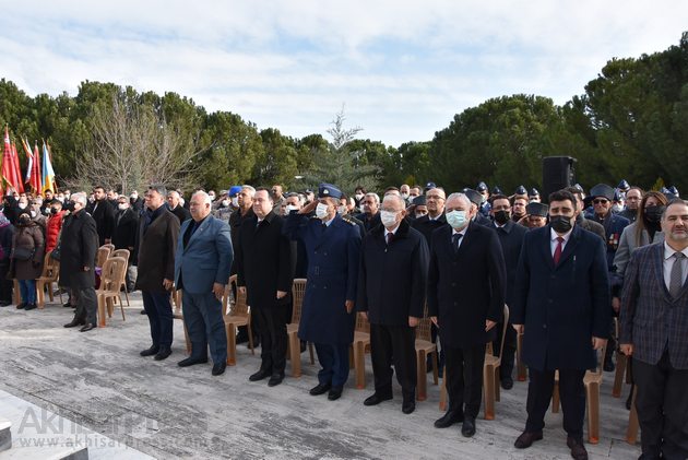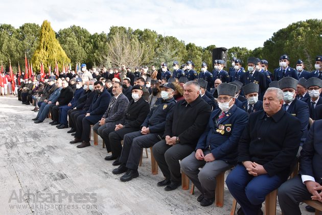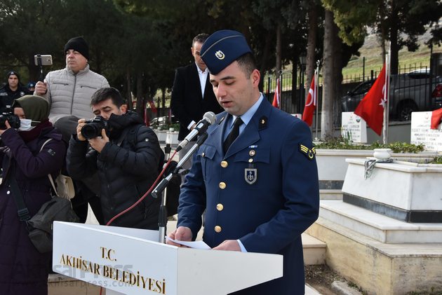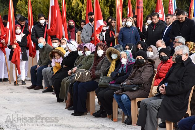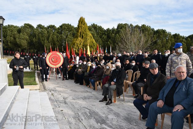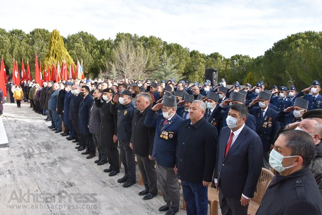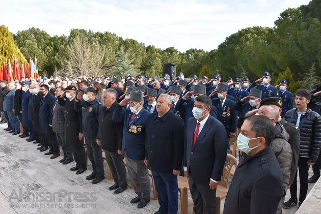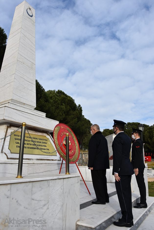 Hava Trafik Kıdemli Üstçavuş Örpen Gönül'ün sunuculuğunu yaptığı program Saygı duruşu, Saygı atışı ve İstiklal Marşının okunmasıyla çelenk koyma töreni başladı. Şehitlik anıtına sırasıyla Kaymakam Sabit Kaya, Hava Meydan ve Garnizon Komutanı Hava İstihkam Albay Mehmet Şahin, Akhisar Belediye Başkanı Besim Dutlulu, Cumhuriyet Başsavcısı Tunay Pulçe, Türkiye Harp Malulü Gaziler, Şehit Dul ve Yetimleri Derneği Başkanı Cehalettin Çabuk çelenk koydu. Günün anlam ve önemini belirten konuşmayı Hava Trafik Kıdemli Üstçavuş Örpen Gönül yaptı. Üstçavuş Örpen Gönül;" Bugün, bağımsızlığımızın timsali, milletimizin vatanı uğruna sergilediği. Fedakarlığın ve kahramanlığın bir ‘destanı olan Çanakkale zaferi’nin 107’inci yıl dönümünün gururunu ve aziz şehitlerimize karşı olan vefa görevimizi yerine getirmenin onurunu bir kez daha yaşıyoruz. Ayrıca bugün, siperler arasındaki mesafenin sadece birkaç metre ve ölümün kaçınılmaz olduğu bir muharebede, öleni görüp kısa bir süre sonra kendisinin de öleceğini bildiği halde! En ufak bir duraksama göstermeden,. Yılmadan savaşarak, milletimizin yüzyıllardır sarsılmış özgüven duygusunu yeniden kuvvetlendiren Çanakkale ruhunun oluştuğu gündür.