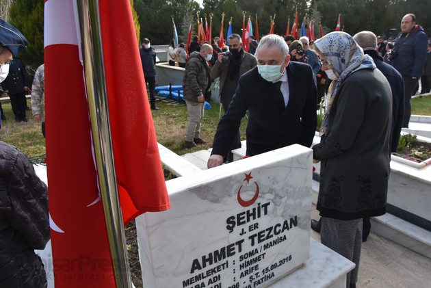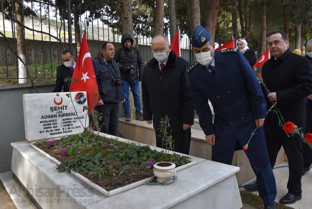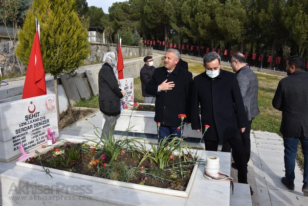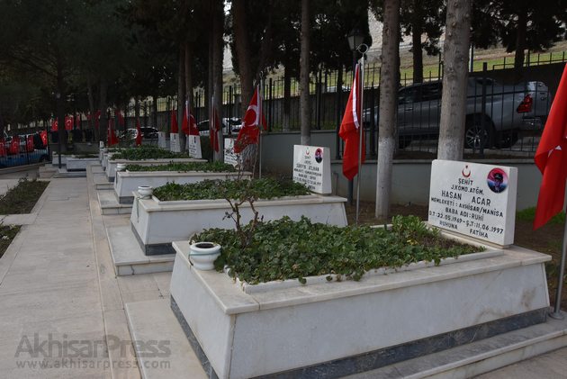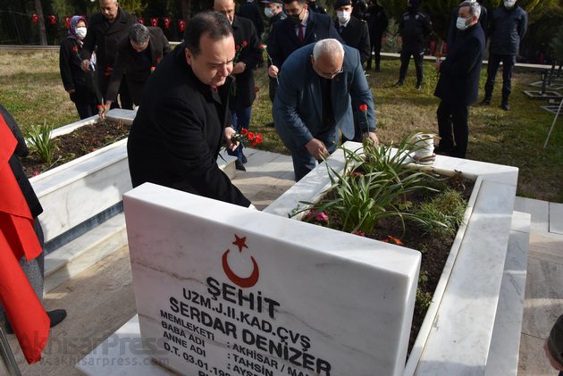 Akhisar Kaymakamı Sabit Kaya şehitlik defterini imzaladı. Akhisar Hilaliye Kur'an Kursu Öğreticisi Selçuk Arap tarafından Kur’an-ı Kerim okudu. Ardından İlçe Müftüsü Mahmut Sami Türkmenoğlu, şehitlerimizin ruhuna dua etti. Duaların ardından protokol şehit mezarları ziyaret edilerek karanfiller bıraktılar.