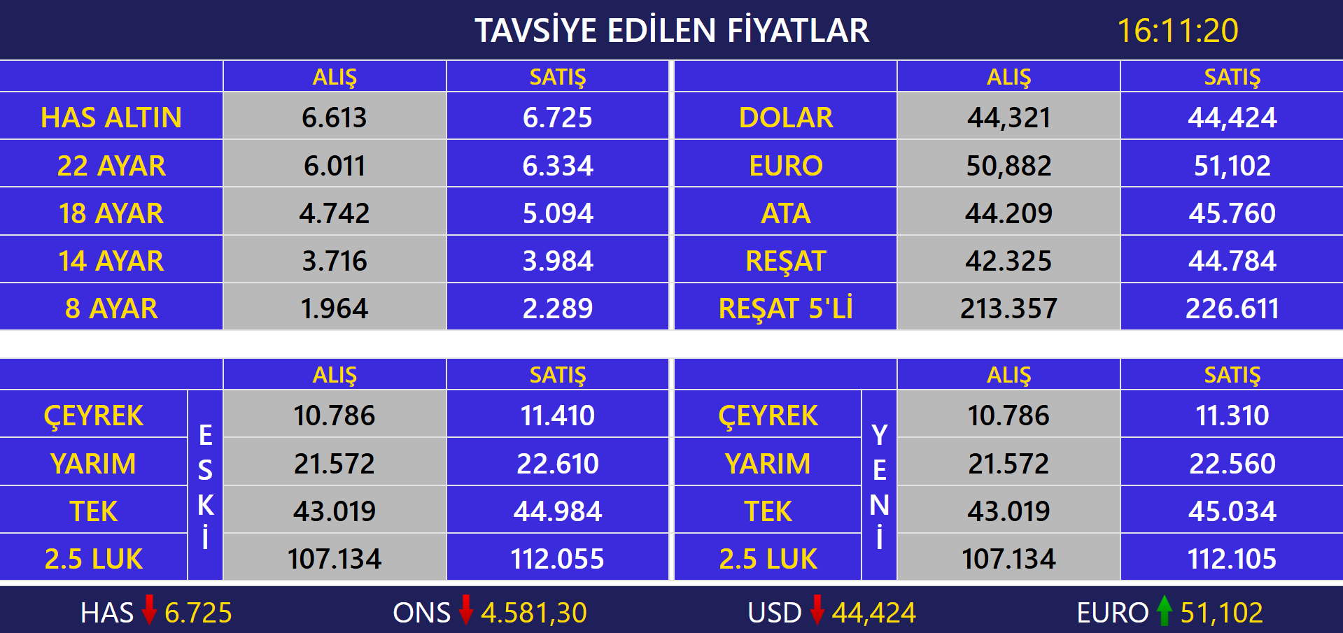 Tam altın: 42.925 TL alış – 44.938 TL satış