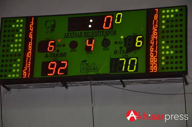 Son çeyrekte yine 5 sayılık farkla (27-22) Akhisar Belediye basket takımı rakibini 22 sayılık farkla 92-70 yendi.