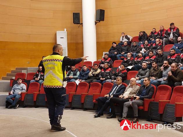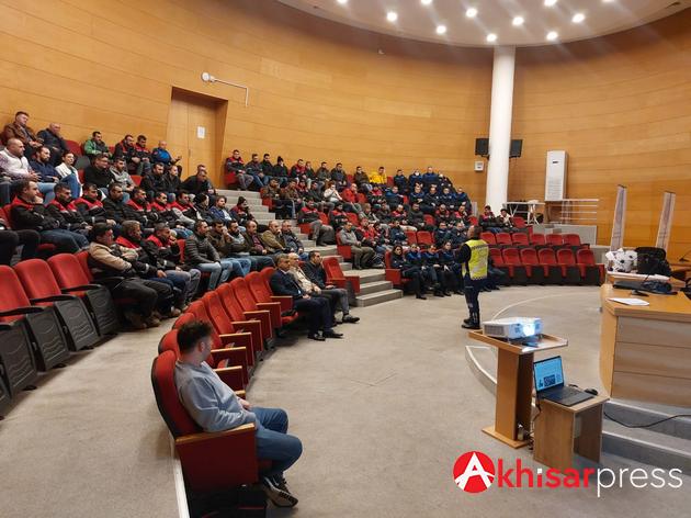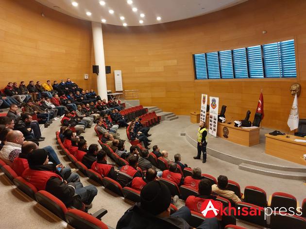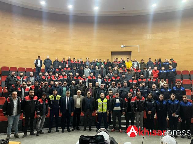 Akhisar Belediyesi Meclis Salonu'nda, Akhisar İlçe Jandarma Komutanlığına bağlı ekipler tarafından Akhisar Belediyesi resmi araç şoförlerine özel trafik eğitimi verildi. Eğitim programı, Akhisar Belediye Başkan Yardımcısı Tuncay Engin ve Destek Hizmetleri Müdürlüğü Araç Sevk Amiri Mehmet Çeken'in koordinasyonunda gerçekleştirildi.