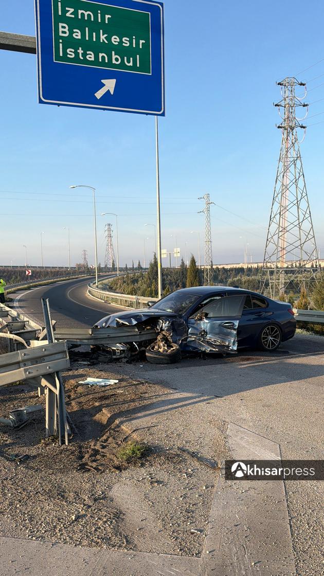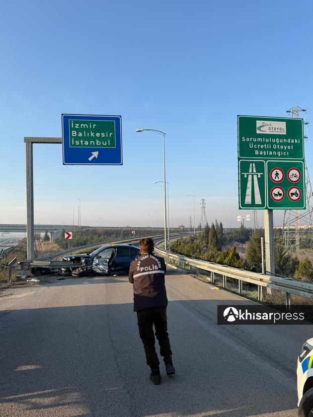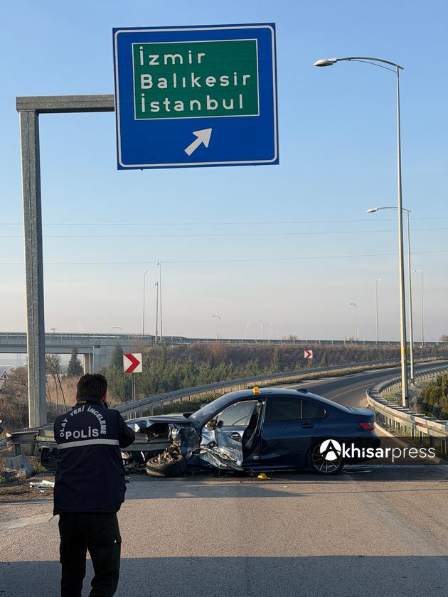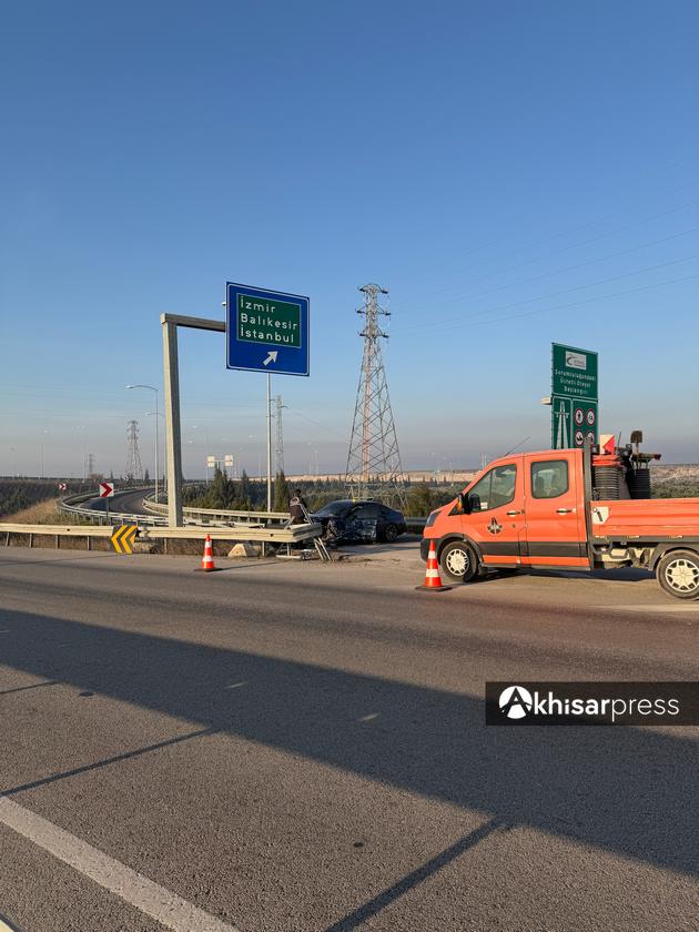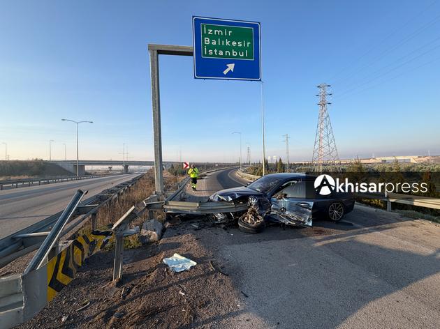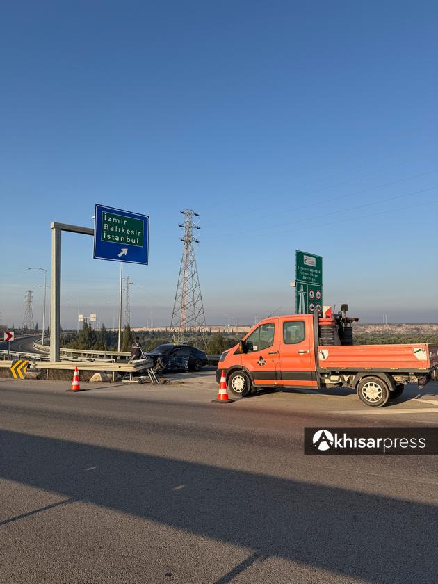 Edinilen bilgilere göre kaza, bugün saat 08.00 sıralarında Akhisar çevreyolunda yaşandı. Vedat İ. (37) idaresindeki 10 APA 607 plakalı otomobil, Akhisar çevreyolundan İzmir–Balıkesir Otoyol bağlantısına girmek istediği sırada kontrolden çıkarak bariyerlere çarptı.