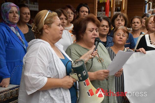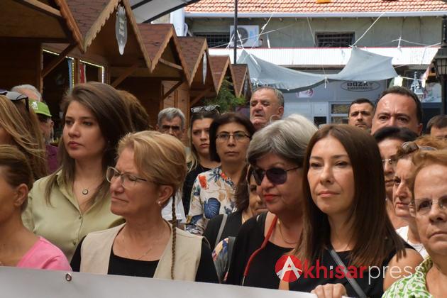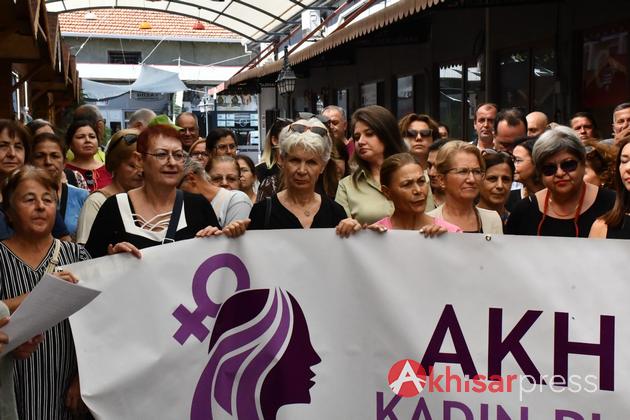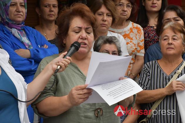 Akhisar Belediye Başkanı Besim Dutlulu ve eşi Özge Dutlulu, CHP Akhisar İlçe Başkanı Hayriye Hacet, CHP Akhisar Kadın Kolları Başkanı Emine Güven ve Akhisar Kent Konseyi Başkanı Cengiz Ödemir’in de katıldığı açıklamayı 8 Mart Kadın Dayanışma Derneği Başkanı Ayşen Uçar okudu.