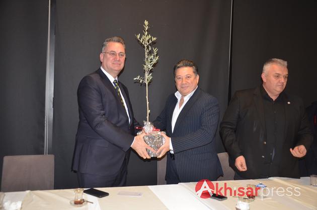 Toplantı sonunda Akhisar Dostlar Meclisi, geleneksel hale getirdiği üzere Başkan Ali Çınarlı’ya zeytin fidanı takdim etti ve meclis rozetlerini takarak teşekkürlerini sundu. (HALDUN AKYÜZ)