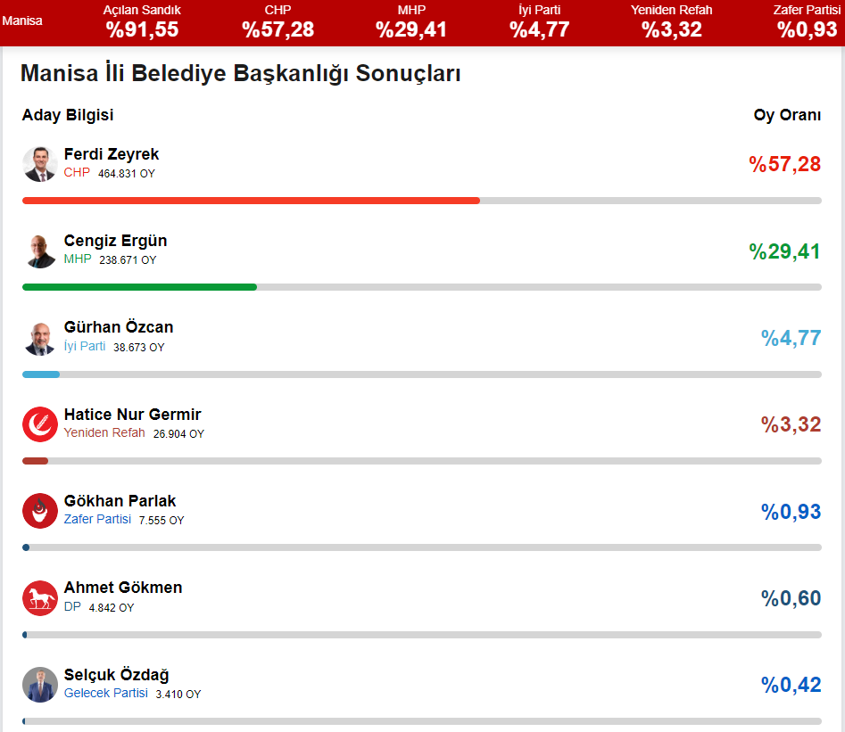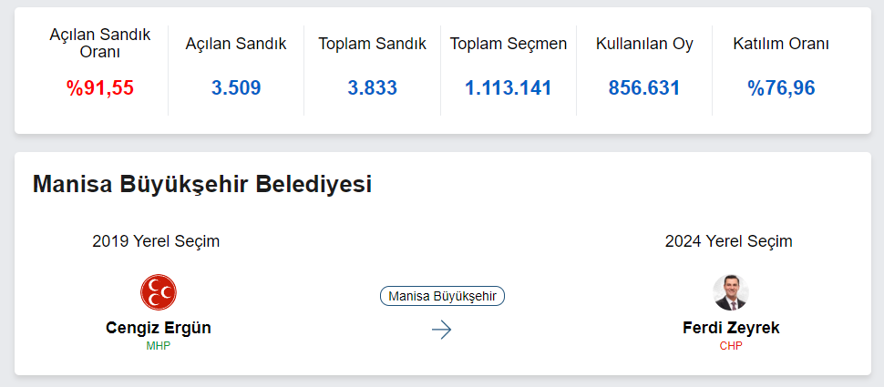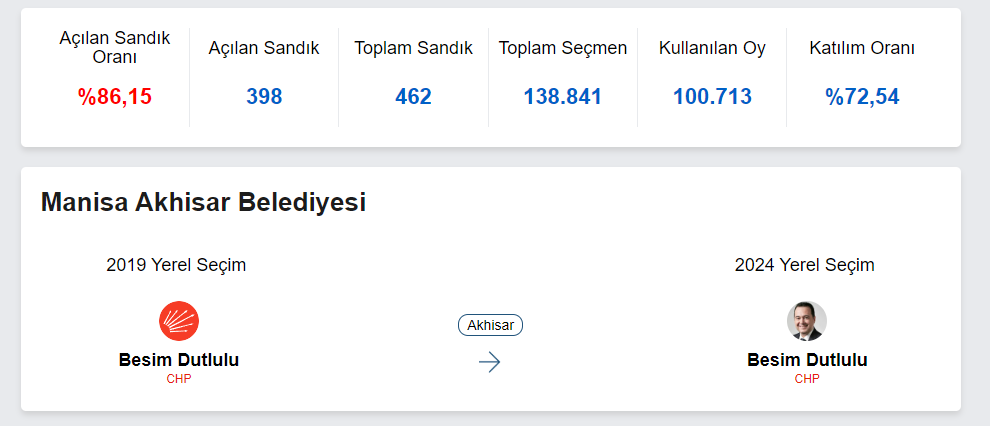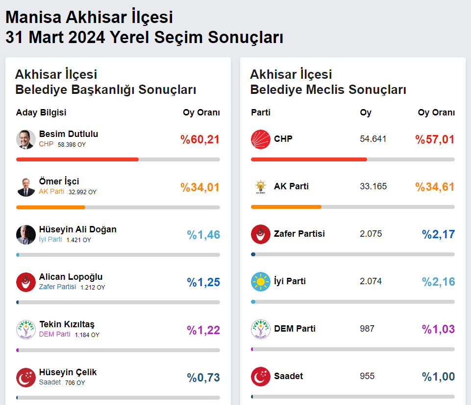 31 Mart 2024 Akhisar Yerel Seçim Sonuçları