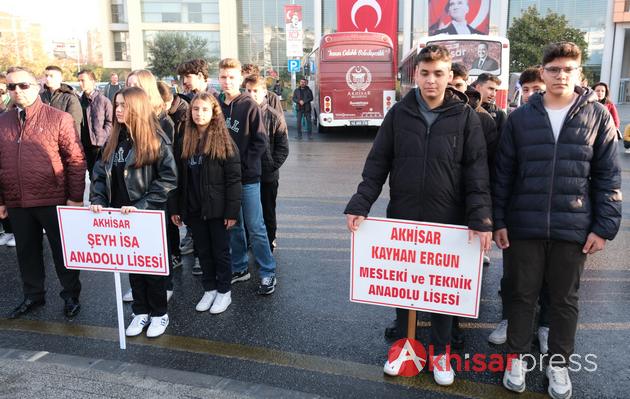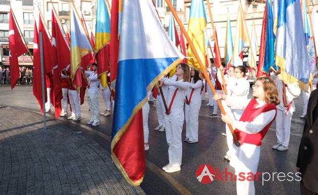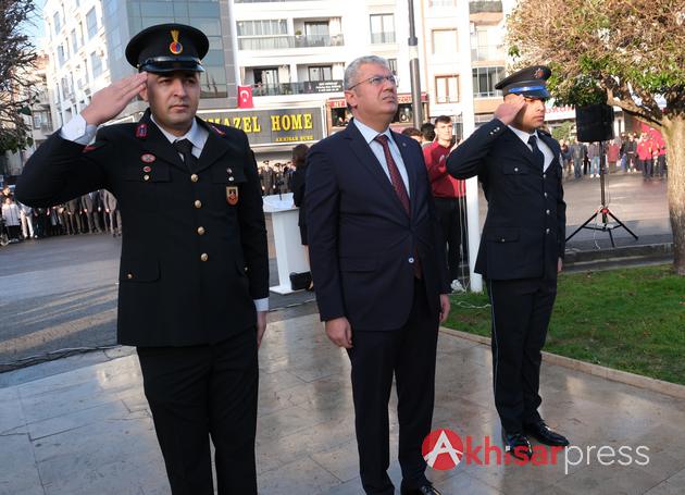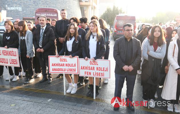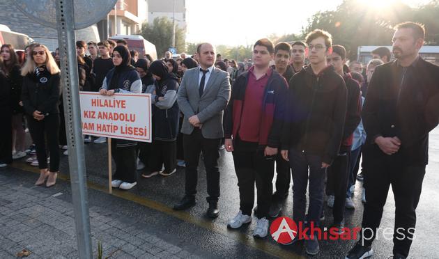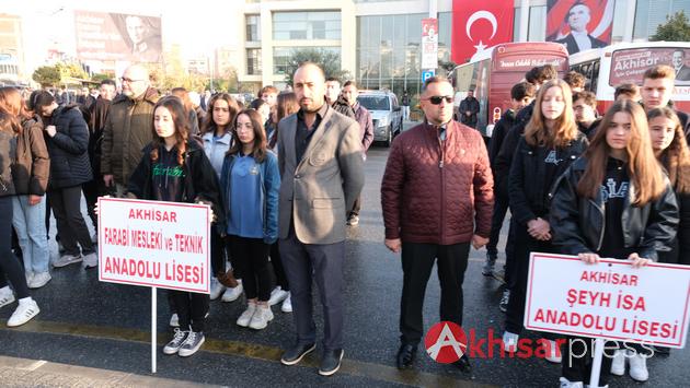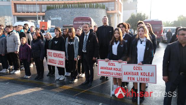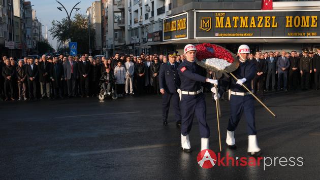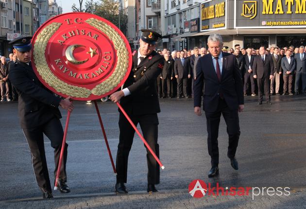 Milli Egemenlik Meydanı'ndaki Atatürk Anıtı'nda yapılan törene, Akhisar Kaymakamı Murat Kütük, Akhisar Garnizon Komutanı Hüseyin Borazan, Akhisar Belediye Başkanı Besim Dutlulu’nun yanı sıra, ilçe protokolü, siyasi parti temsilcileri, sivil toplum kuruluşları ve çok sayıda vatandaş katılım sağladı.