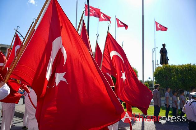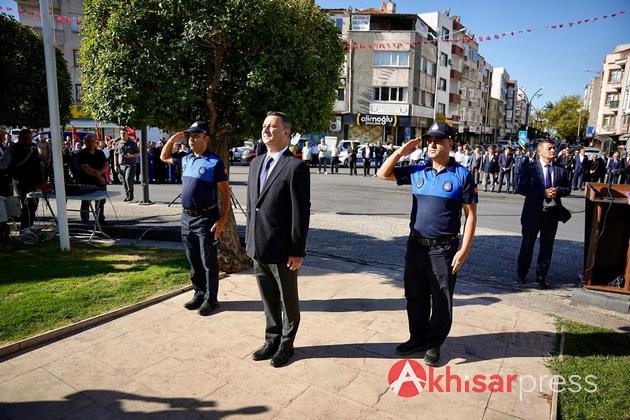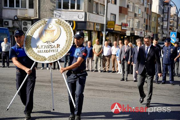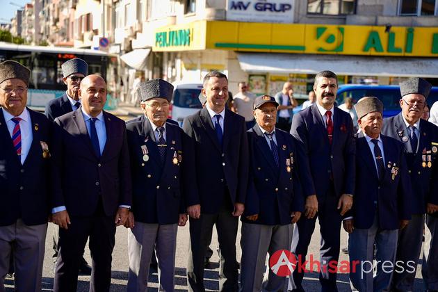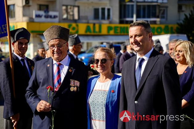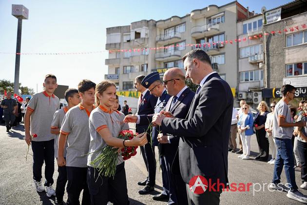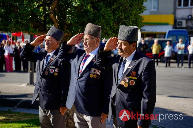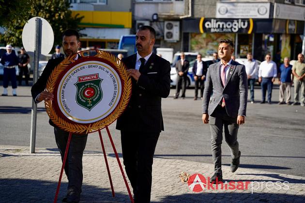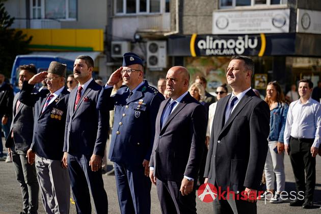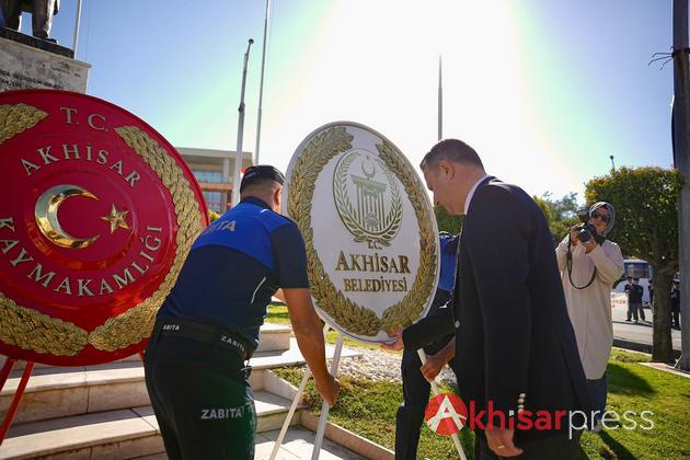 Törende Akhisar Kaymakamlığı, Garnizon Komutanlığı, Akhisar Belediyesi, Türkiye Muharip Gaziler Derneği ve Türkiye Harp Malulü Gaziler, Şehit Dul ve Yetimleri Derneği temsilcileri anıta çelenk sundu. Akhisar Belediyesi Bandosu eşliğinde gerçekleştirilen saygı duruşunun ardından İstiklal Marşı okundu.
