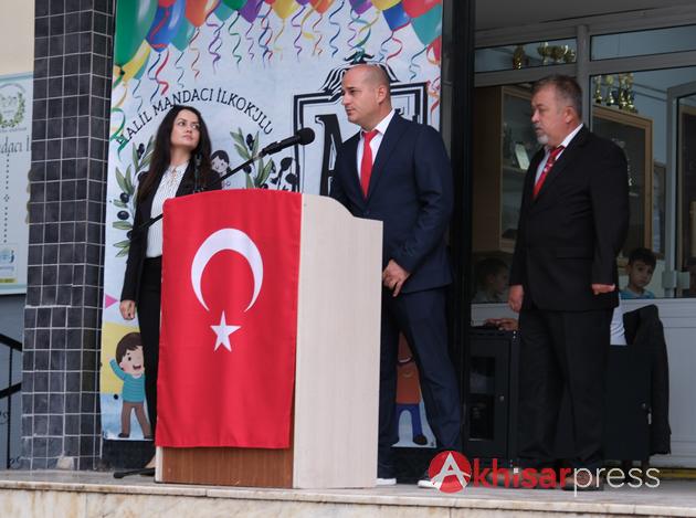İlköğretim Haftası'nın ikinci töreni Halil Mandacı İlkokulu bahçesinde gerçekleşti. Program, Saygı Duruşu ve İstiklal Marşı ile başladı. Akhisar İlçe Milli Eğitim Müdürü Mükremin Karasu, günün anlam ve önemini belirten konuşmasında, eğitim ve öğretimin toplumun geleceği için hayati öneme sahip olduğunu vurguladı. Karasu, "Eğitim, bir memleket meselesidir. Başöğretmen Mustafa Kemal Atatürk'ün dediği gibi 'Eğitimdir ki bir milleti ya hür, bağımsız, şanlı, yüksek bir topluluk halinde yaşatır; ya da esaret ve sefalete terk eder.' Bu nedenle çocuklarımızı milli ve manevi değerlerle donatılmış, ahlaki açıdan erdemli bireyler olarak yetiştirmek temel hedefimizdir" dedi.