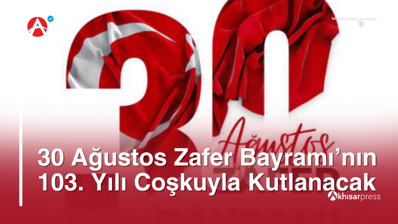 Akhisar Kaymakamlığı, 30 Ağustos Zafer Bayramı’nın 103. yıl dönümü dolayısıyla gerçekleştirilecek kutlama programını açıkladı. Kaymakam Mustafa Can, yayımladığı davet mesajında tüm vatandaşları kutlama etkinliklerine katılmaya davet etti.