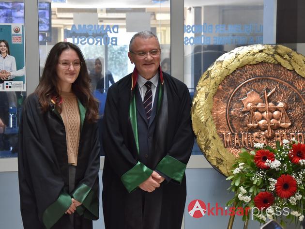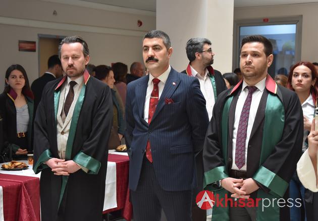 Saat 10.30’da başlayan tören, saygı duruşunun ardından yapılan konuşmalarla devam etti. Manisa Barosu Akhisar Temsilcisi Avukat Cavit Atar, konuşmasında savunma makamının yargının kurucu unsurlarından biri olduğunu vurguladı. Avukatların yalnızca bireylerin haklarını savunmakla kalmadığını belirten Atar, aynı zamanda adaletin tesisi ve hukukun üstünlüğünün korunmasında önemli bir rol üstlendiklerini ifade etti.