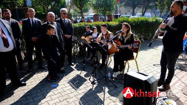 Saygı duruşu ve İstiklal Marşı'nın ardından, Akhisar Halk Eğitimi Müdürlüğü ekipleri tarafından seslendirilen Çanakkale türkülerinden oluşan bir dinleti yer aldı.