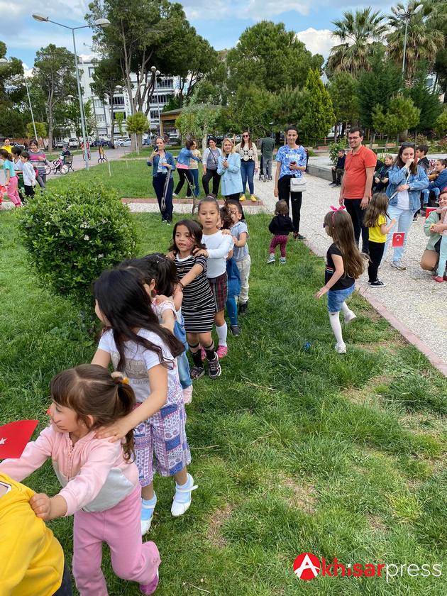 Akhisar'da 23 Nisan coşkusu tüm heyecanıyla yaşandı. Bu özel gün dolayısıyla CHP Akhisar İlçe Başkanlığı, İlçe Başkanı Hayriye Hacet liderliğinde bir dizi etkinlik düzenledi. Gençlik Kolları Başkanı Emre Ercan, Kadın Kolları Başkanı Emine Güven ve CHP ilçe yöneticileri, gençlik ve kadın kolları üyeleriyle birlikte Akhisar'daki çocuk parklarında çocuklarla buluştu.