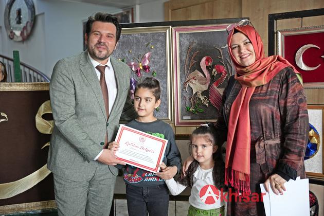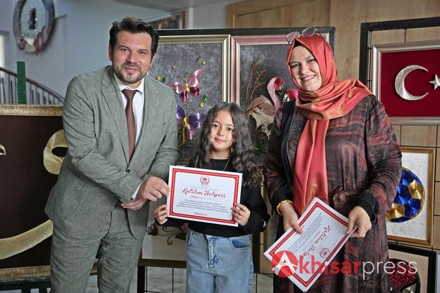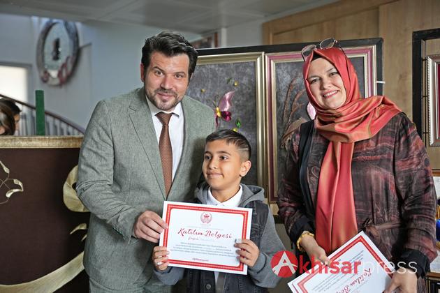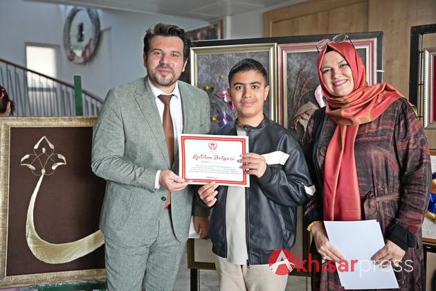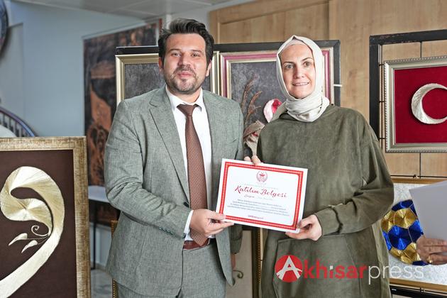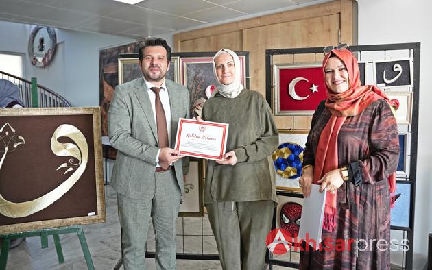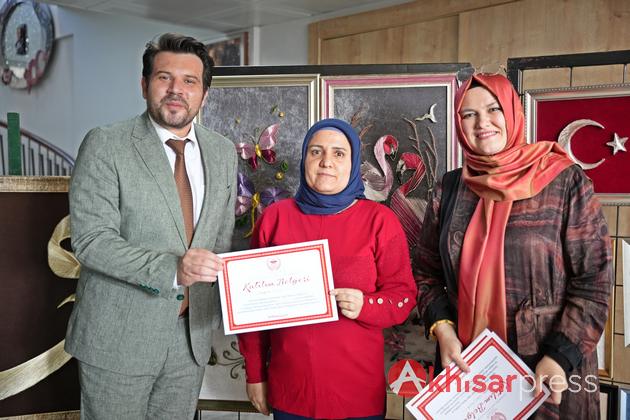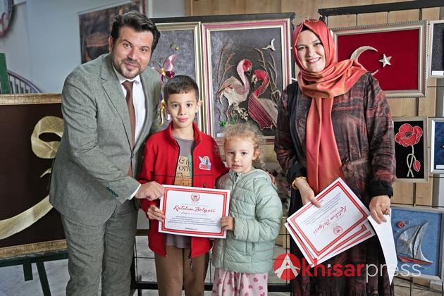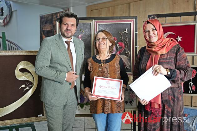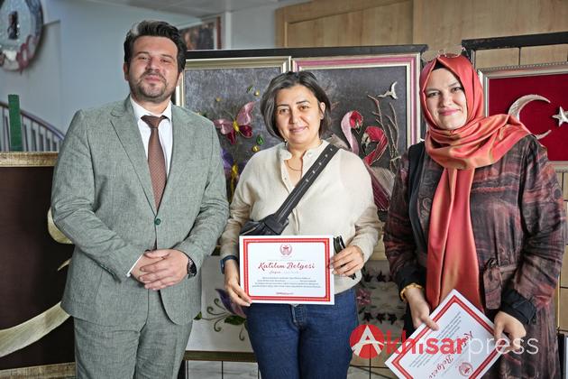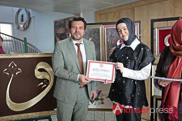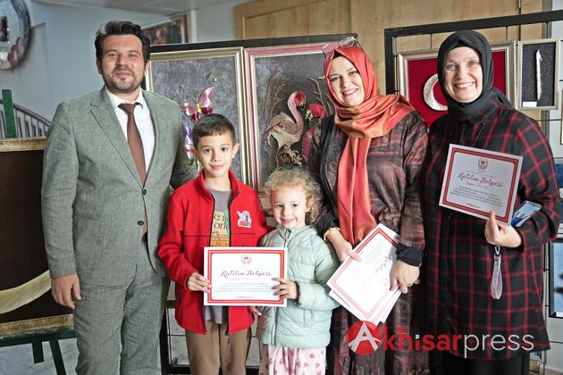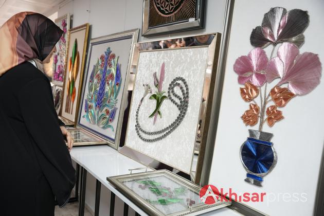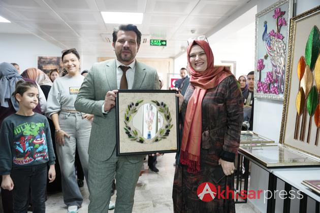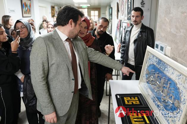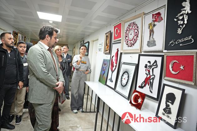 Serginin açılışına katılan Akhisar Belediye Başkan Yardımcısı Emre Okkalı, kursiyerlerin çalışmalarını yakından inceleyerek, sanata ve üretime verdikleri emekten dolayı anne ve çocukları tek tek tebrik etti.