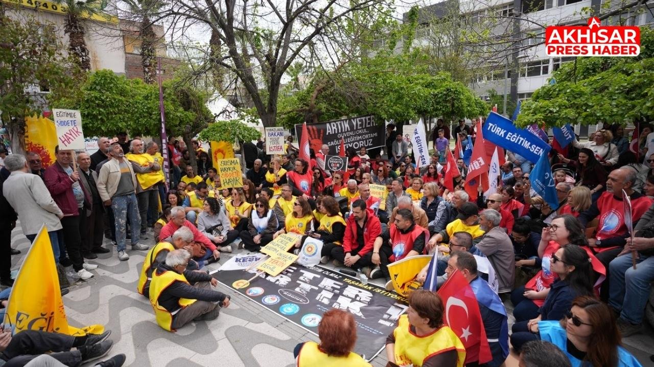 Akhisar’da eğitim alanında artan şiddet olaylarına dikkat çekmek amacıyla Eğitim-İş Sendikası öncülüğünde oturma eylemi düzenlendi. Eski Hükümet Konağı önünde saat 13.00’te gerçekleştirilen eyleme eğitimciler ve vatandaşlar katıldı.