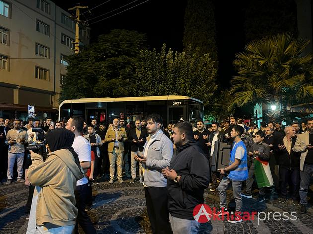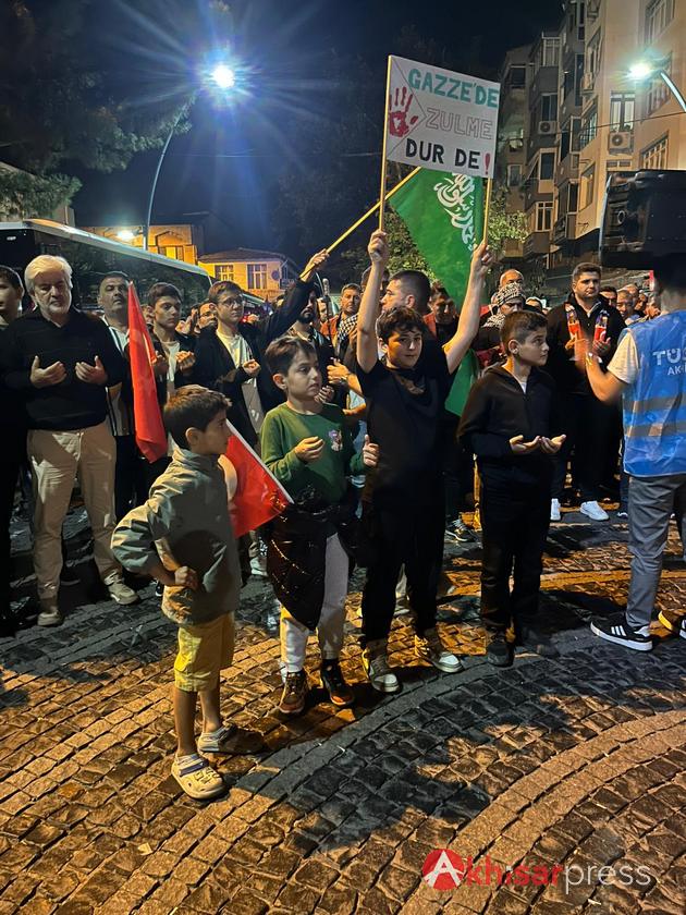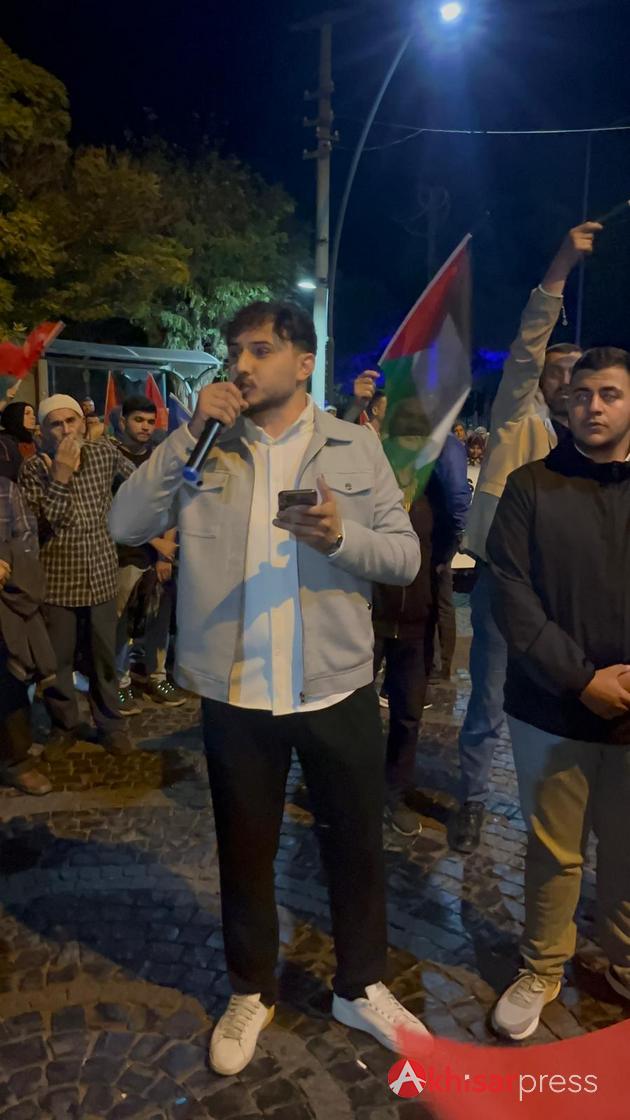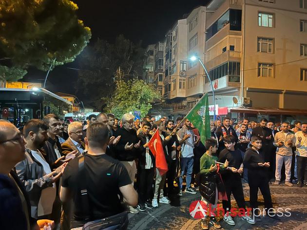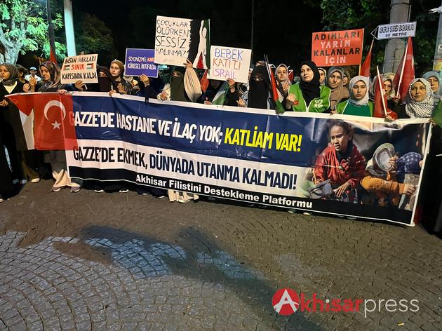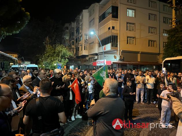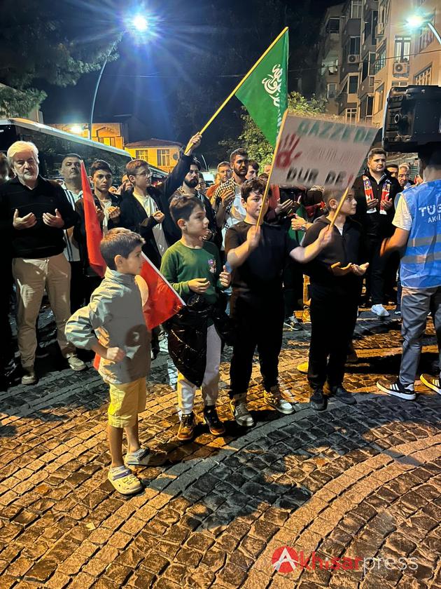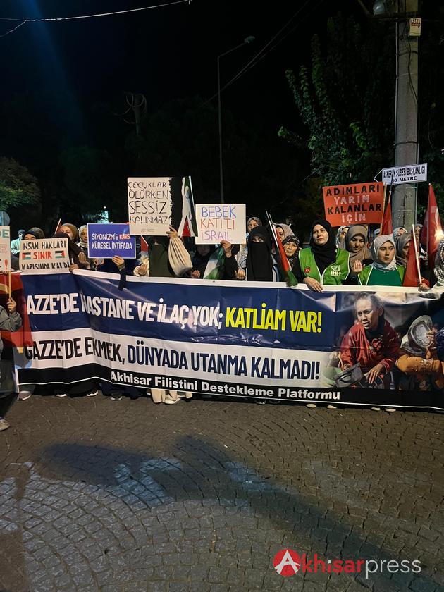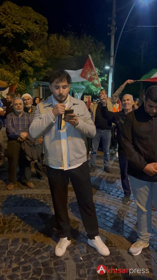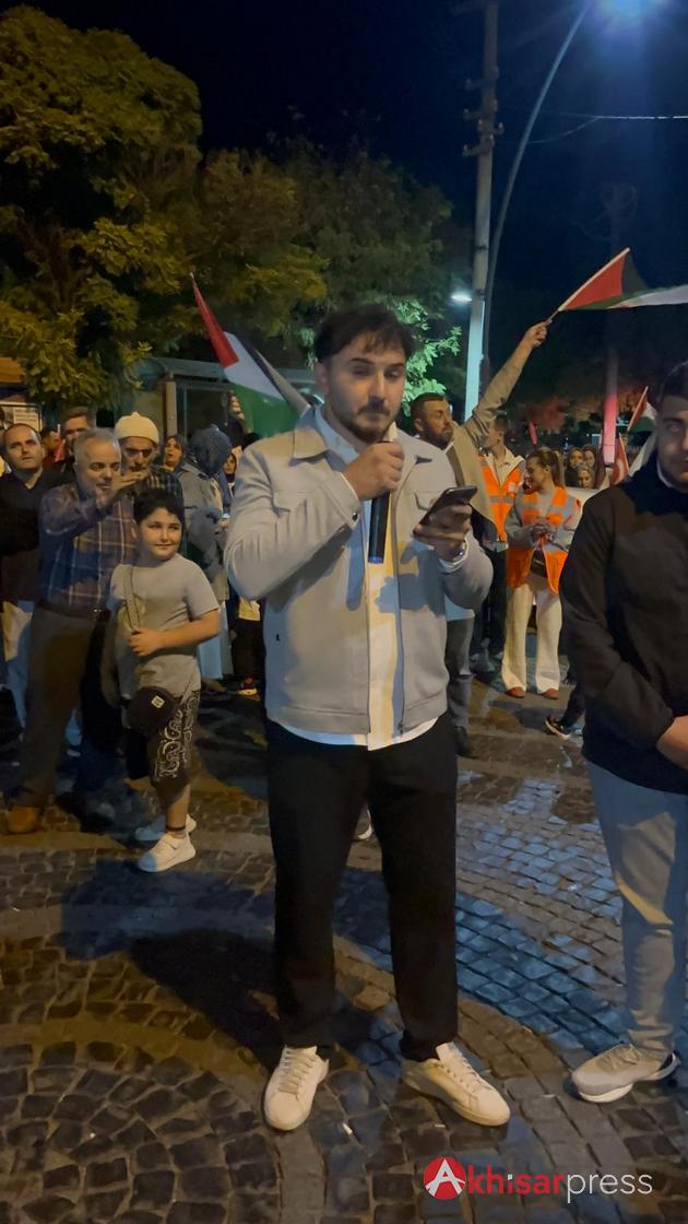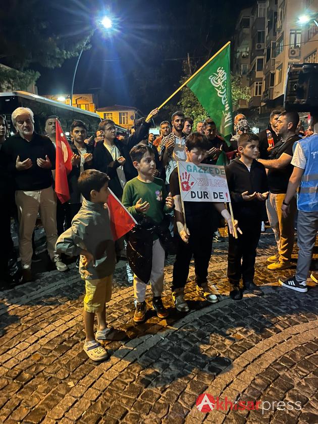 Akhisarlı vatandaşların yoğun katılım gösterdiği yürüyüşte, Filistin halkına güçlü bir destek mesajı verildi.