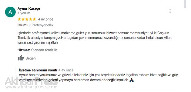 Evren Coşkun; “Biz Coşkun Temizlik olarak ekibimize ve yaptığımız işlere güveniyoruz. Yaptığımız hizmetlerde yüzde yüz müşteri memnuniyet garantisi vermekteyiz.