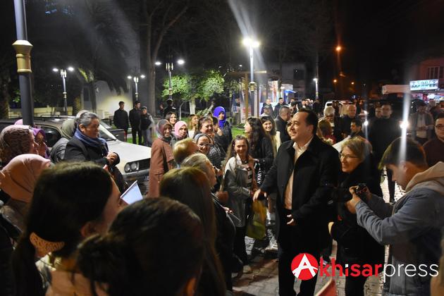 Akselendi Mahallesi’ni ziyaret eden Başkan Dutlulu, mahalle sakinleri tarafından havai fişekler ve meşaleler ile sevgi gösterileriyle karşılandı. Vatandaşlar meydanı hınca hınç doldurdu. Başkan Dutlulu’ya ziyaretlerde eşi Özge Dutlulu, Cumhuriyet Halk Partisi Akhisar İlçe Başkanı Hayriye Hacet, İyi Parti Akhisar Eski İlçe Başkanı Halil Korkmaz, meclis üyesi adayları da eşlik etti.