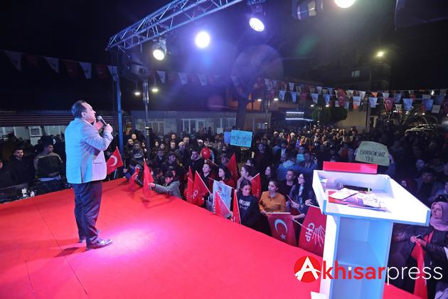 Akselendi halkına seslenen Akhisar Belediye Başkanı Besim Dutlulu, yaptığı konuşmasında 5 yılda Akhisar’a ve Akselendi Mahallesi’ne gerçekleştirdiği hizmetlerden bahsetti. Yeni meydan çalışması, sıcak ve soğuk asfalt çalışmaları, parke taş çalışmaları, çocuk oyun parkı, arazi yolu çalışmaları, sosyal ve kültürel çalışmalar gibi birçok alanda çok güzel hizmetler yaptıklarını söyleyen Başkan Dutlulu, “Yıllardır hizmetten mahrum kalan, siyasetçilerin seçimden seçime hatırladığı Akselendi’ye 5 yılda çok güzel hizmetler kazandırdık, her fırsatta ziyaret ederek hatırlarını sorduk. Bu akşam bizleri coşkuyla karşılayan Akselendi halkımızın 31 Mart seçimlerinde de sandıkları patlatacağına ve hizmete, çalışkanlığa oy vereceklerine yürekten inanıyorum. Misafirperverlikleri ve destekleri için Akselendi halkımıza çok teşekkür ediyorum” dedi.