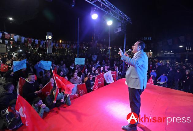 Ama Akselendi halkımız hiç merak etmesin; biz bu görevde olduğumuz sürece Akselendi’yi sürekli ziyaret edecek ve Akselendi halkımız hangi hizmeti isterse onu yapacağız. İnşallah Manisa Büyükşehir Belediyesi’nde de Ferdi Zeyrek kazandığında içme suyu, yağmursu ve kanalizasyon hatlarını da yenileyeceğiz. Akselendi halkı, hak ettiği belediyecilik hizmetlerine bizimle kavuşacak ”dedi.