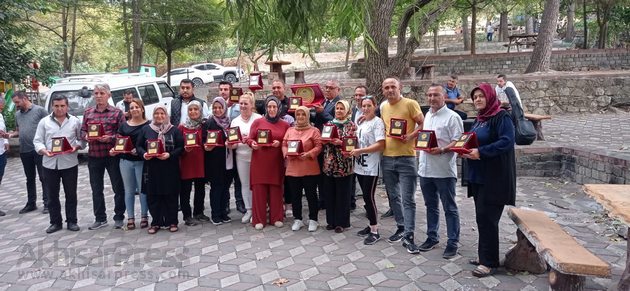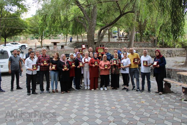 Piknikte Baktat’ta 10.yılını tamamlamış personellere teşekkür plaketi verildi. Plaketlerini Ali Baklan, Uğur Baklan, Savaştepe Kaymakamı Mehmet Yüce ve Kadir Akbulut takdim etti.