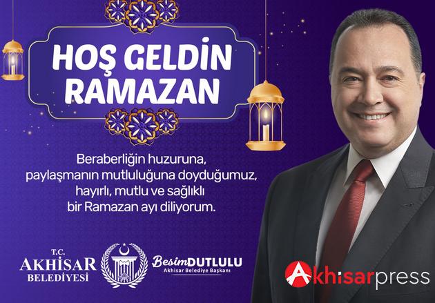Başkan Dutlulu, mesajında şu ifadelere yer verdi; “Sevgi, saygı, hoşgörü ve hayırlarımızı paylaşacağımız Ramazan ayının, Akhisar’ımız başta olmak üzere ülkemize huzur ve bereket getirmesini diliyor, tüm halkımızın mübarek Ramazan'ını en içten duygularımla kutluyorum.