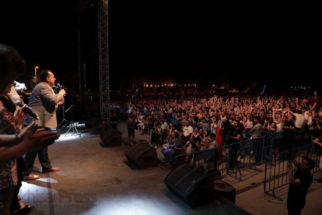 Konser sırasında sahneye çıkarak 90’ların unutulmaz sanatçılarına muhteşem gece için teşekkür eden Belediye Başkanı Besim Dutlulu günün anısına usta müzisyen Metin Özülkü’ye çiçek takdim etti.