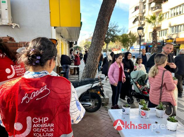 Cumhuriyet Halk Partisi Akhisar Gençlik Kolları, 8 Mart Dünya Emekçi Kadınlar Günü dolayısıyla kent merkezinde kadınlara çiçek dağıtarak anlamlı bir etkinliğe imza attı.