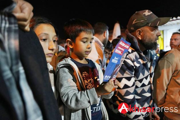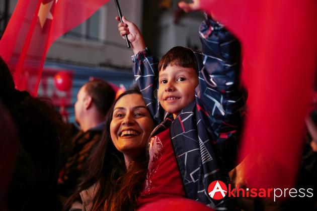 “Burada Akhisar halkı var, Akhisar’ın özgür iradesi var. Bizi sevenler ve bizim sevdiklerimiz var. Çok güzelsiniz, çok. Öyle güzel bir kalabalık var, öyle güzel görünüyorsunuz ki, bu akşam bizi çok mutlu ettiniz. Ayaklarınıza, yüreklerinize sağlık.