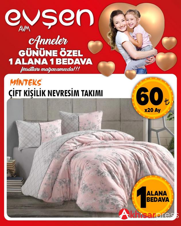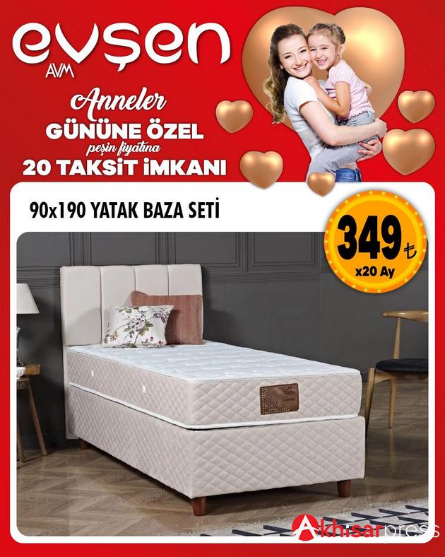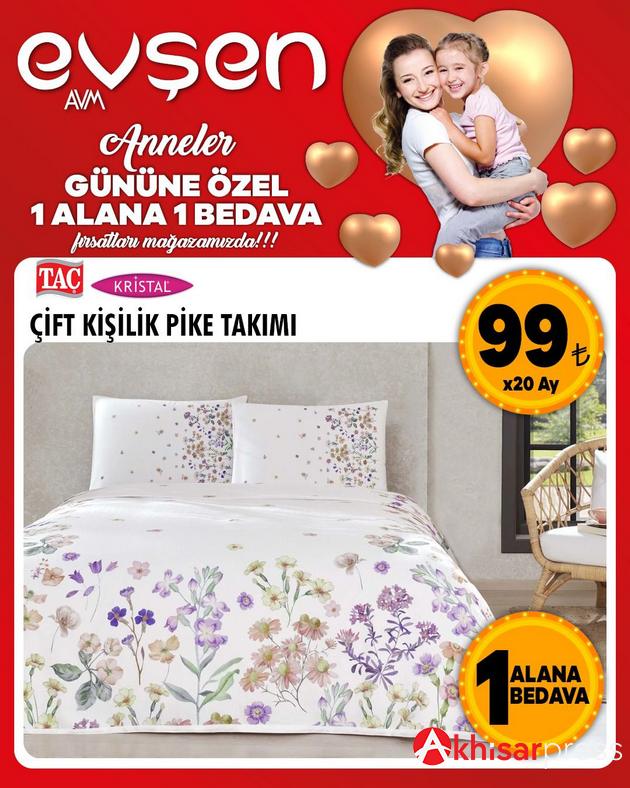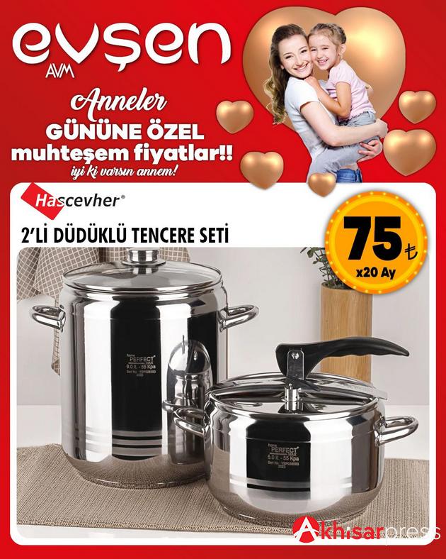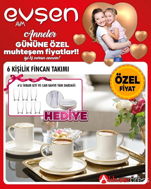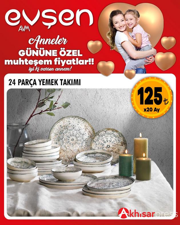 Akhisar'ın 1. Nakliye Caddesi'nde bulunan Evşen AVM, 12 Mayıs Pazar günü kutlanacak Anneler Günü için özel kampanyalı fiyatlar sunmaya başladı.