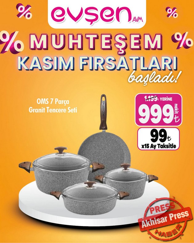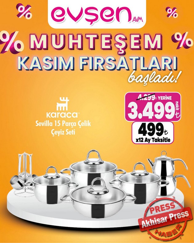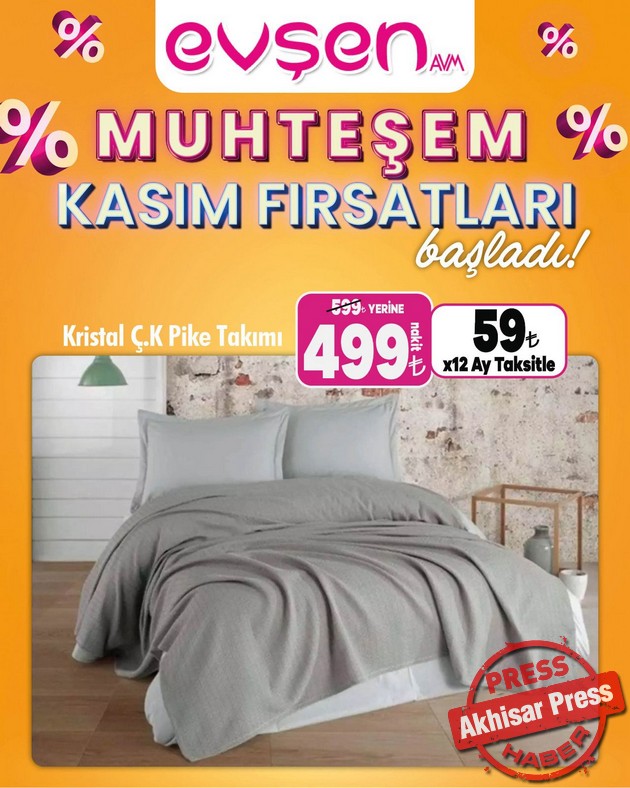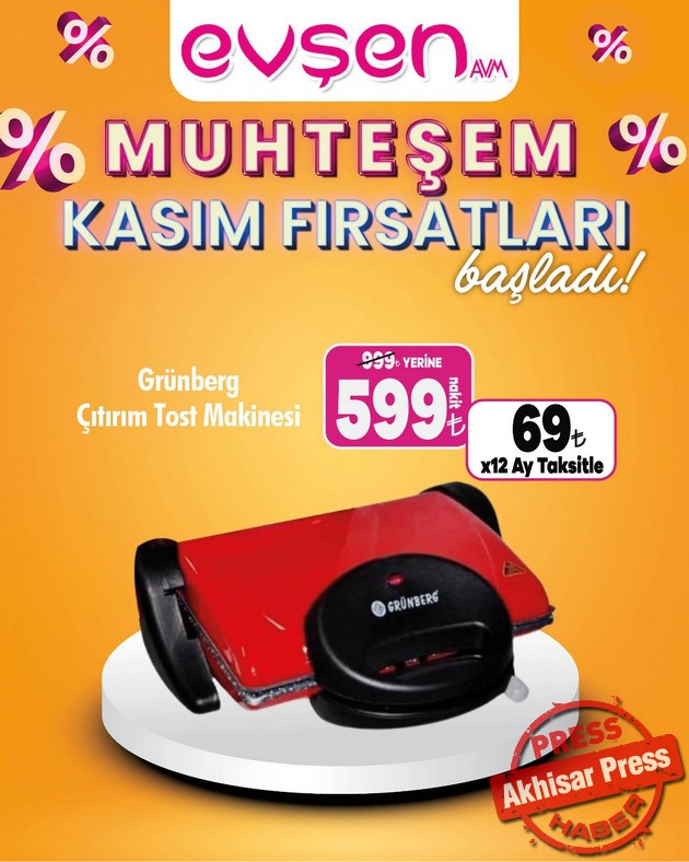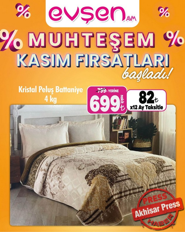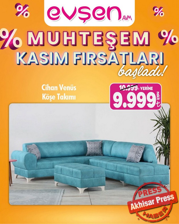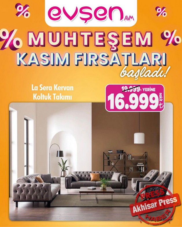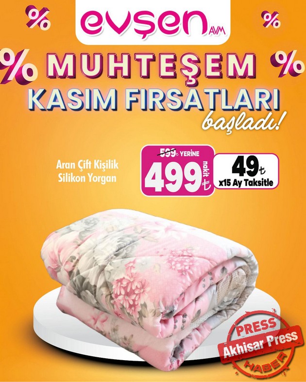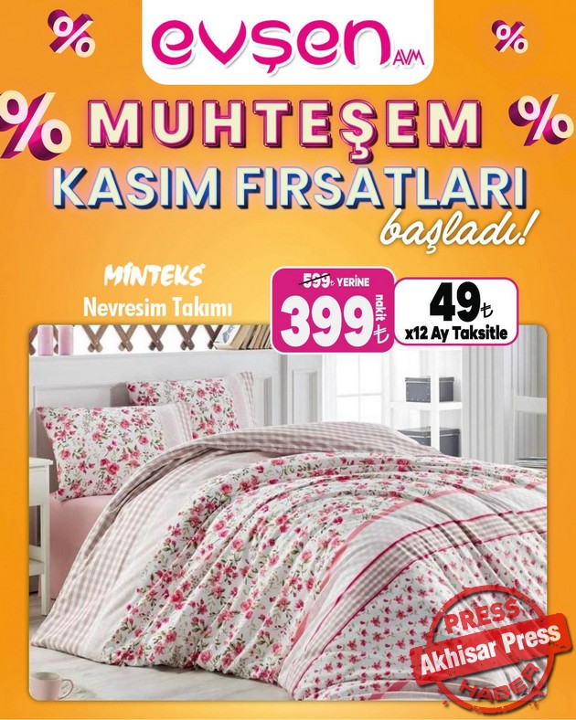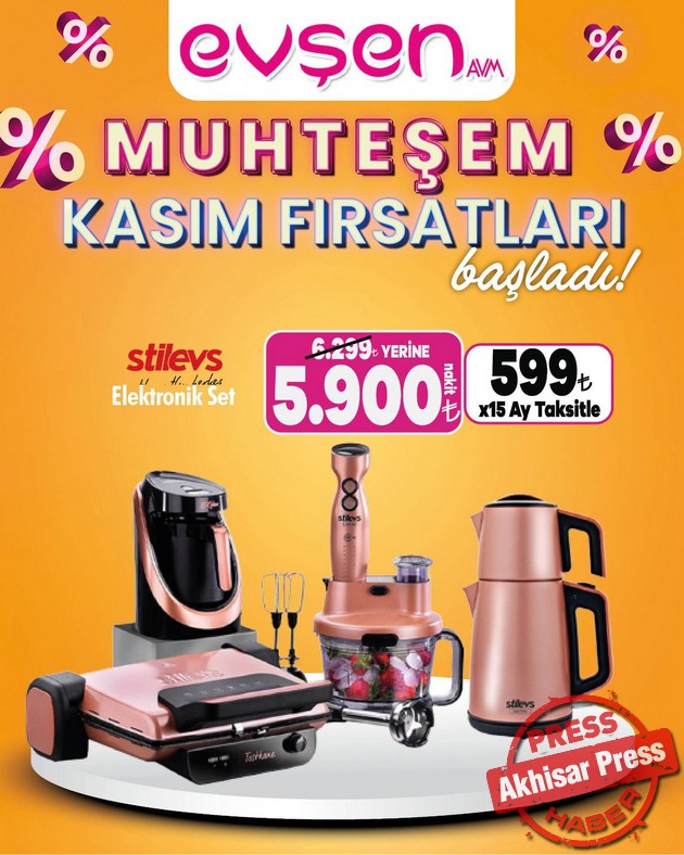 Akhisar’da 1. Nakliye Caddesi’nde hizmet veren Evşen AVM’de “Muhteşem Kasım Fırsatları” başladı.