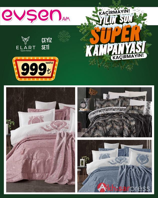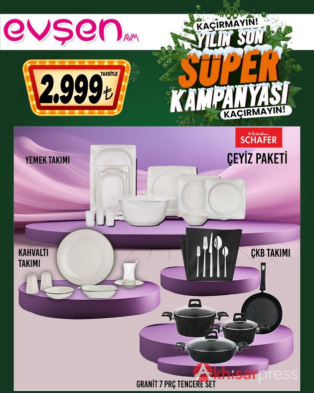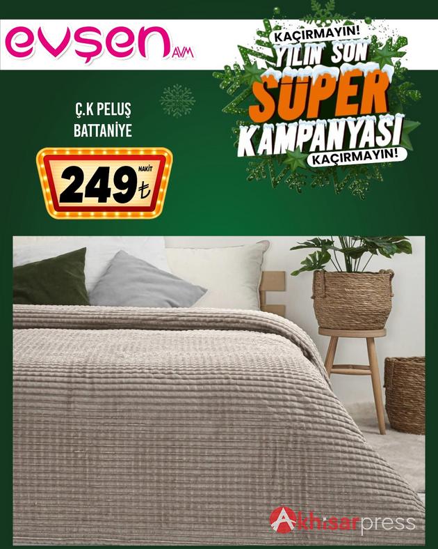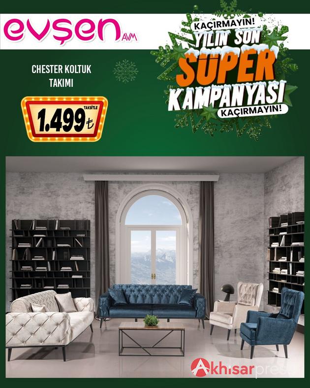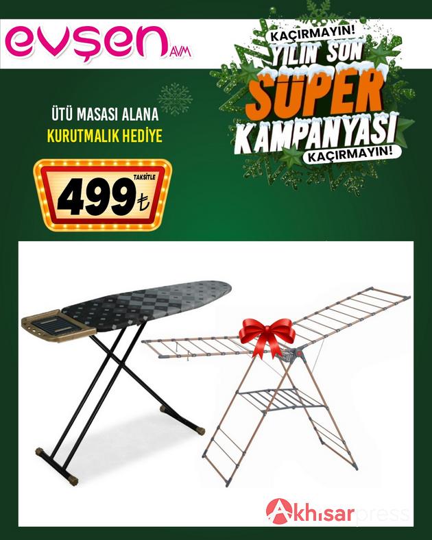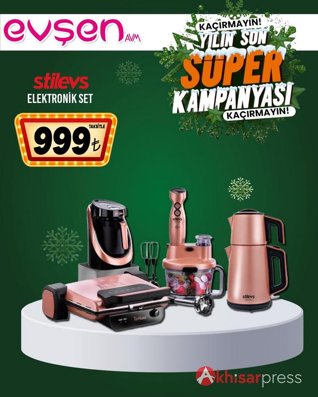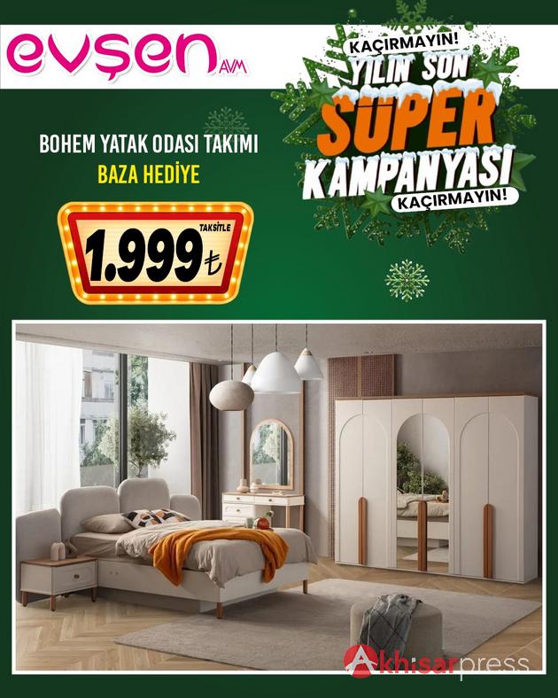 Akhisar’ın 1. Nakliye Caddesi üzerinde hizmet veren Evşen AVM, yılın son kampanyasıyla alışveriş severleri sevindiriyor. Mobilyadan beyaz eşyaya, küçük ev aletlerinden zücaciyeye, çeyiz eşyalarından tekstil ürünlerine kadar birçok üründe büyük indirimler başladı.