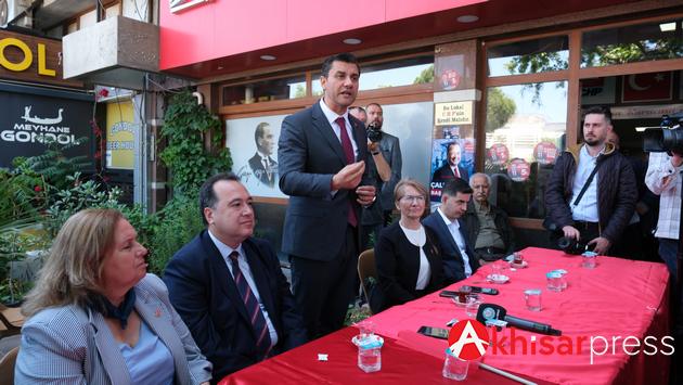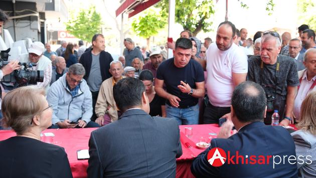 Ziyaret sırasında, İlçe Başkanı Hayriye Hacet ve Belediye Başkanı Besim Dutlulu birer konuşma yaptı. Hacet, "Bugün Akhisar'ımıza baharı getirdik. Emeklerinden dolayı Başkanımız Ferdi Zeyrek'i tebrik ediyorum. Değişim rüzgarlarıyla Cumhuriyetimizin ikinci yüzyılında büyük değişimlere ve güzelliklere imza atıyoruz," dedi ve ilçe başkanlığı ziyaretinin kendileri için büyük bir onur olduğunu vurguladı.