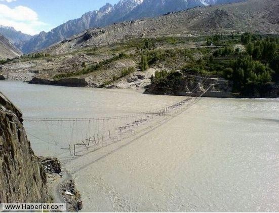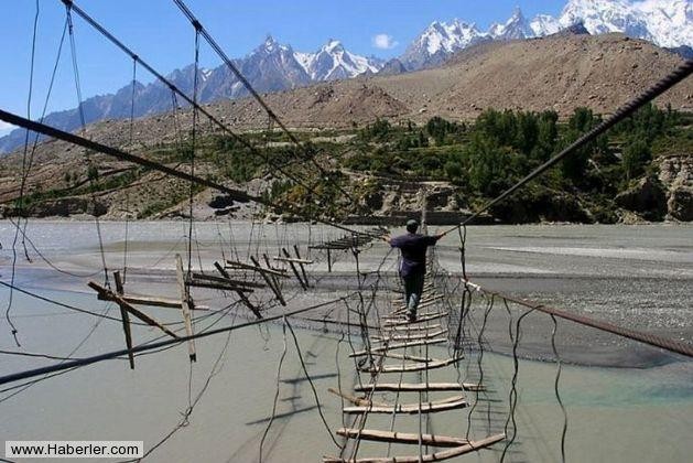 Hüseyni Asma Köprüsü - Pakistan'ın kuzeyinde yer alan köprü Borit gölü üzerinde yer alıyor ve dünyanın en tehlikeli köprülerinden biri.