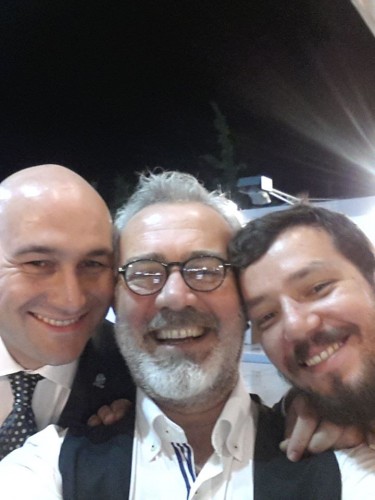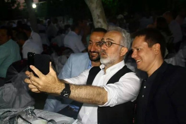 Yenişehirlioğlu, Akhisar Belediye başkanı Salih Hızlı (sağda) ve başkan yardımcısı Ömer İşçi ile de selfie çekildi.