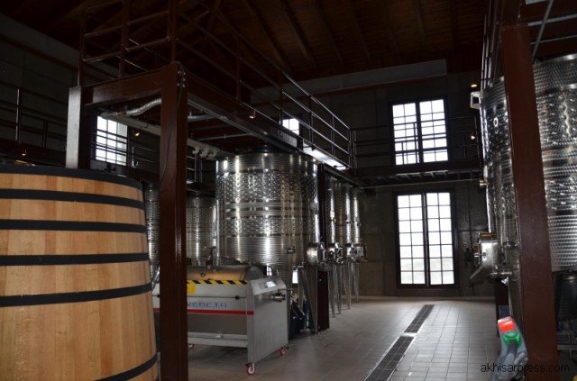 Üzüm kabul ve sap ayırmanın yapıldığı ön avludan fermantasyon tanklarının bulunduğu orta kata girilir. Sapları ayrılan ve çatlatılan elle toplanmış üzümler, hasar görmemeleri için pompa kullanılmadan özel yapım paslanmaz çelik konteynerlar ve forklift yardımıyla kedi merdivenini üstünden tanklara dökülürler.