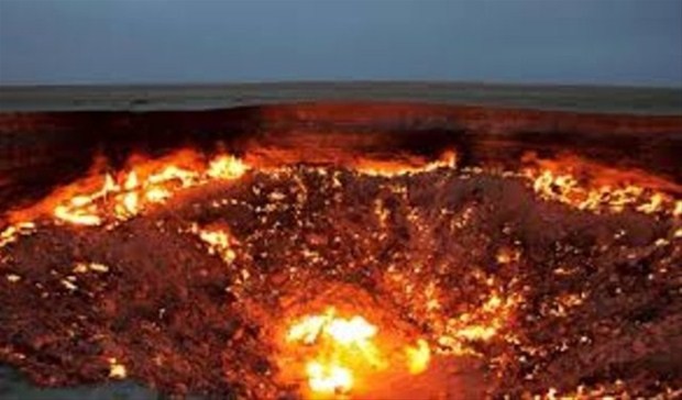 Türkmenistan'da bulunan "Cehennem Kapısı" isimli bu kuyudan Metan gazi çıktığı için 43 yıl önce ateşe verilerek aralıksız yanmaktadır.