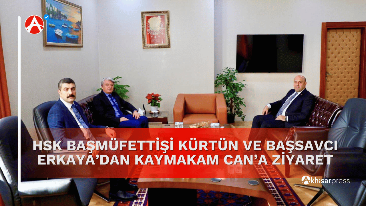 HSK Başmüfettişi Hüsamettin Kürtün ile Akhisar Cumhuriyet Başsavcısı Sebahattin Erkaya, Akhisar Kaymakamı Mustafa Can’ı makamında ziyaret etti.