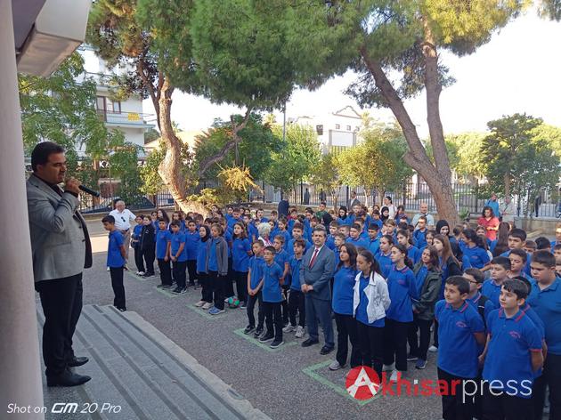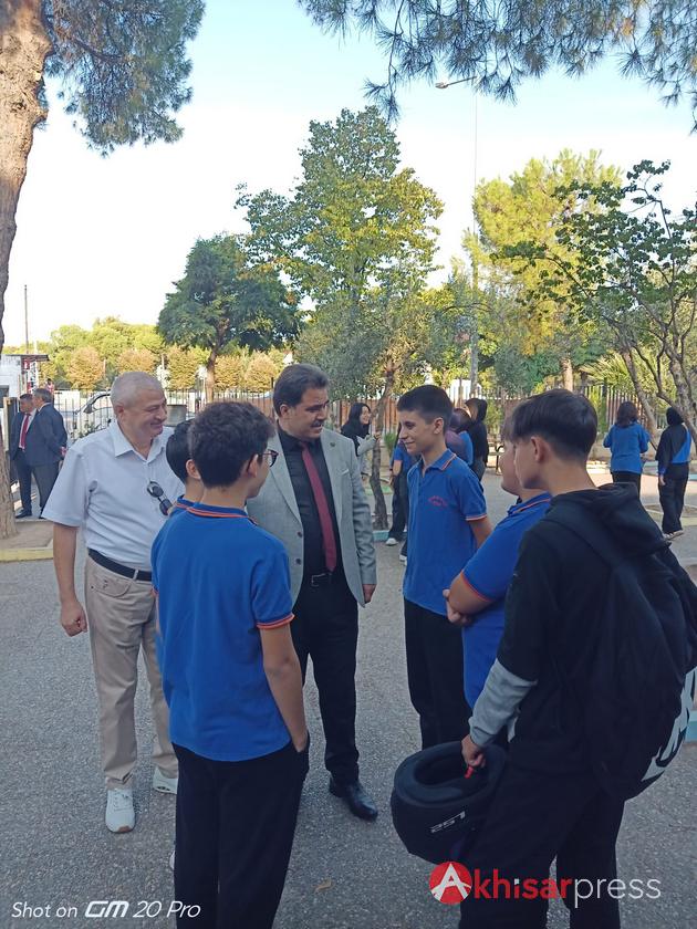Akhisar İlçe Milli Eğitim Müdürü Mükremin Karasu, haftanın ilk gününde beraberinde Şube Müdürleri Zeki Atik, Mahmut Yağmurlu ve Murat Keskin ile birlikte Şehit Serdar Denizer İmam Hatip Ortaokulu’nda bayrak törenine katıldı. Öğrencilerle birlikte İstiklal Marşı’nı okuyan Karasu, ardından sınıfları ziyaret ederek öğrencilere başarı dileklerinde bulundu.