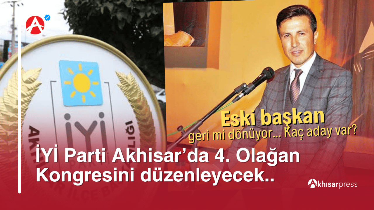 İYİ Parti Akhisar İlçe Teşkilatı, 4. Olağan İlçe Kongresi için hazırlıklarını tamamladı. Kongre, 18 Ekim 2025 Cumartesi günü saat 11.00’de Akhisar Belediyesi Park İçi Sinema Salonu’nda gerçekleştirilecek.