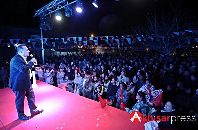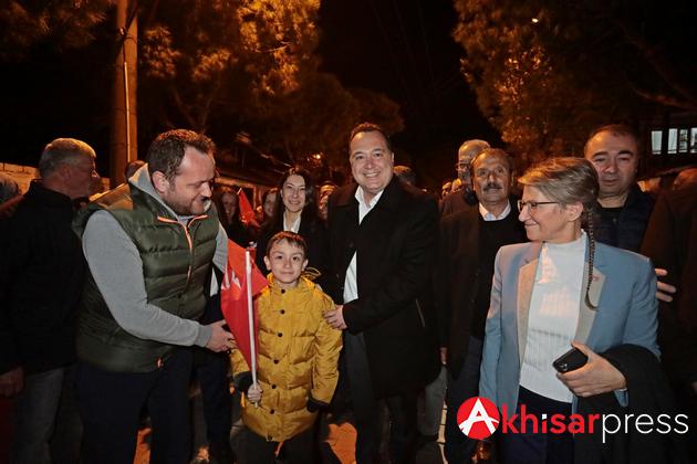 Kayalıoğlu Mahallesi’ni ziyaret eden Başkan Dutlulu, mahalle sakinleri tarafından traktör ve motosikletler eşliğinde, havai fişekler ve meşaleler ile karşılandı. Vatandaşlar Kayalıoğlu meydanını hınca hınç doldurdu. Başkan Dutlulu’ya ziyaretlerde eşi Özge Dutlulu, Manisa Milletvekili A. Vehbi Bakırlıoğlu, Cumhuriyet Halk Partisi Akhisar İlçe Başkanı Hayriye Hacet, meclis üyesi adayları da eşlik etti.