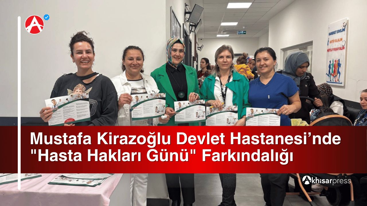 Akhisar Mustafa Kirazoğlu Devlet Hastanesi, 26 Ekim Hasta Hakları Günü'nü anlamlı bir etkinlikle kutladı. Hastanenin Hasta Hakları Birimi tarafından düzenlenen etkinlikte, sağlık hizmeti alan vatandaşların hak ve sorumlulukları üzerine farkındalık yaratıldı.