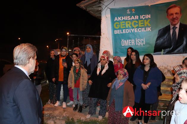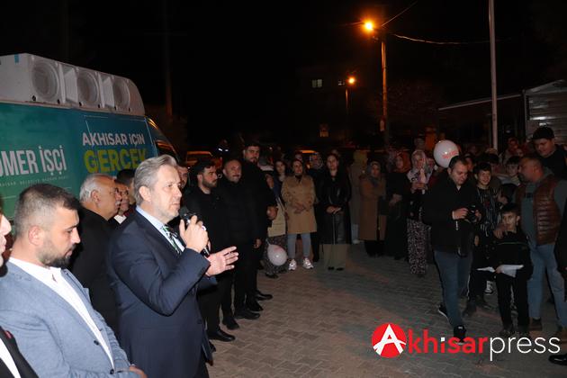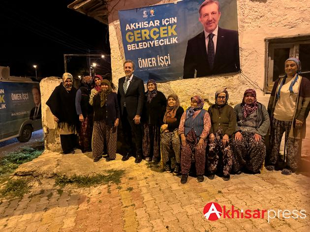 Cumhur İttifakı Akhisar Belediye Başkan Adayı Ömer İşçi, AK Parti Akhisar İlçe Başkanı İsmail Ahmet Sözcüer ve MHP Akhisar İlçe Başkanı Ahmet Namal ile birlikte, Akhisar'da ziyaret etmedik mahalle bırakmadı. Cumhur İttifakının yeni adresi Akhisar'ın Yenidoğan, Kızlaralanı ve Seğirdim mahalleleriydi.