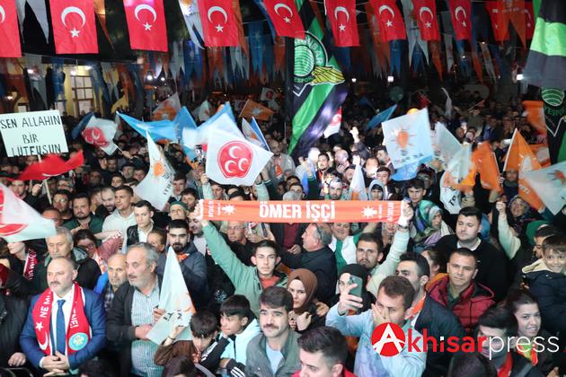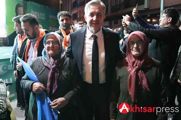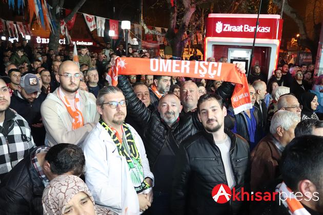 Binlerce Akhisarlının oluşturduğu kortej eşliğinde Çınarlıkapı Meydanı'na gelen başkan adayı Ömer İşçi'yi, miting alanında dev kalabalık karşıladı. Seçime günler kala İşçi'nin mitinglerine olan katılımın artması dikkat çekerken, Çınarlıkapı mitingine katılan vatandaşların coşku ve heyecanları gözden kaçmadı.