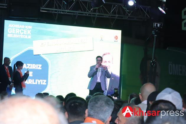 Akhisar Belediyesi'nde belediye başkan yardımcılığı görevini de yürüttüğü 15 yıllık süreçte yapılan eser ve hizmetleri anlatarak konuşmasına başlayan Başkan Adayı İşçi, yeni döneme ilişkin projelerini vatandaşlara tek tek açıkladı. 15 yıllık belediyecilik tecrübesiyle ve daha güçlü olarak halkın karşısına çıktığını belirten İşçi, sahip olduğu bu güç ile Akhisar'ı daha güzel yarınlara taşıyacağını belirtti.