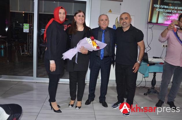HALDUN AKYÜZ - Akhisarspor’un efsane kaptanlarından 16 yaşından itibaren 7 ayrı futbol kulübünde forma giyen, Akhisarspor’da 10 yıl aralıksız oynayan şampiyonluklar yaşayan kaptan Emin Kökçü için 2018 yılında kurulan Thyateira Masterler takımı yönetimi eşlerinin de katılımı ile “Onur Gecesi” düzenledi. Duygulu anların yaşandığı gecede eşi Ülkü Hanım ile Emin Kökçü göz yaşlarını tutamadı.