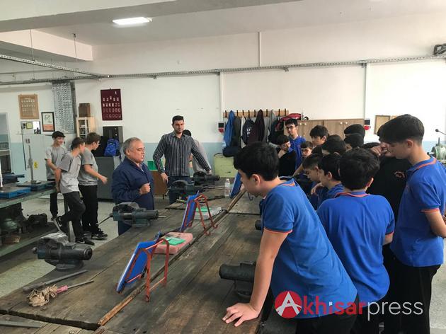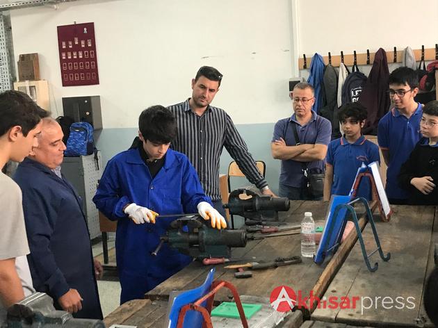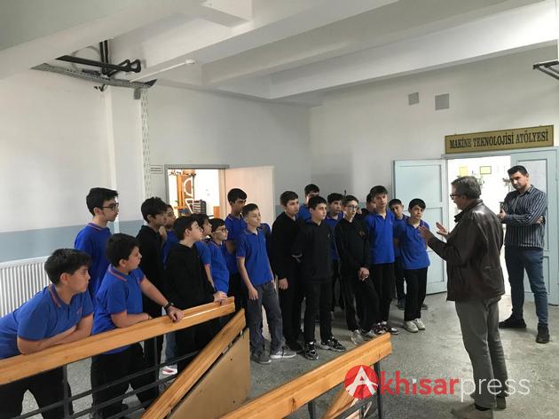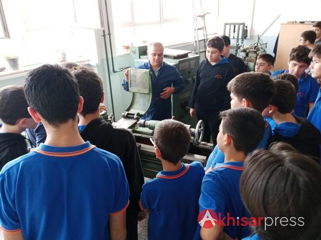 Manisa İl Milli Eğitim Müdürlüğü tarafından hayata geçirilen “Atölyede 1 Gün” projesi kapsamında ilçedeki ortaokul son sınıf öğrencileri, meslek liselerini ziyaret ederek mesleki eğitim hakkında bilgi ediniyor.