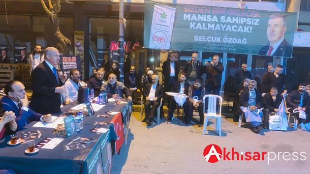 Selçuk Özdağ dün gece Aynı Ali mahallesinde düzenlenen vatandaş buluşmasında; “Siz bu şehri yönetemediniz. Kent için değil, kendiniz için çalıştınız. Bu halk bu sefer büyükşehir belediye başkanlığına layık olmadığınızı ve kendi şahsi amaçlarınıza, o makamı alet ettiğinizi anladı. Manisa halkı bu sefer sizi çok ihtiyacınız olan uzun süreli tatile gönderecek. Zaten hiç gelmediğiniz ve sevmediğiniz Manisa’yı elveda diyeceksiniz. Siz gidin İzmir’deki evinizde ve denize nazır villanızda istirahate çekilin. Bizde çok iyi bildiğimiz işimizi yapalım. Manisa’yı ve halkını hak ettiği hizmetlerle buluşturtalım” diye konuştu.