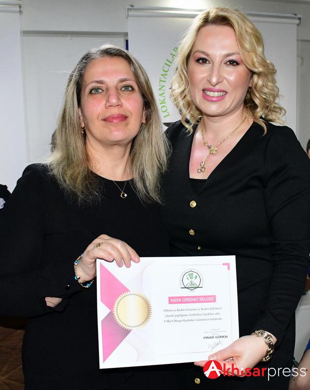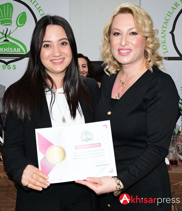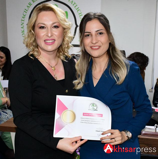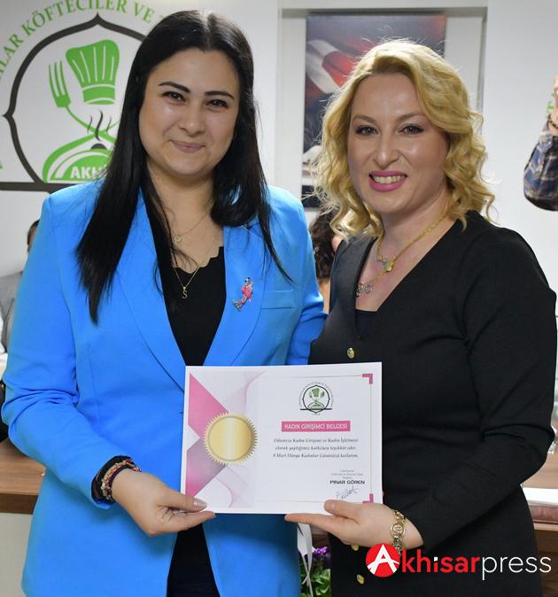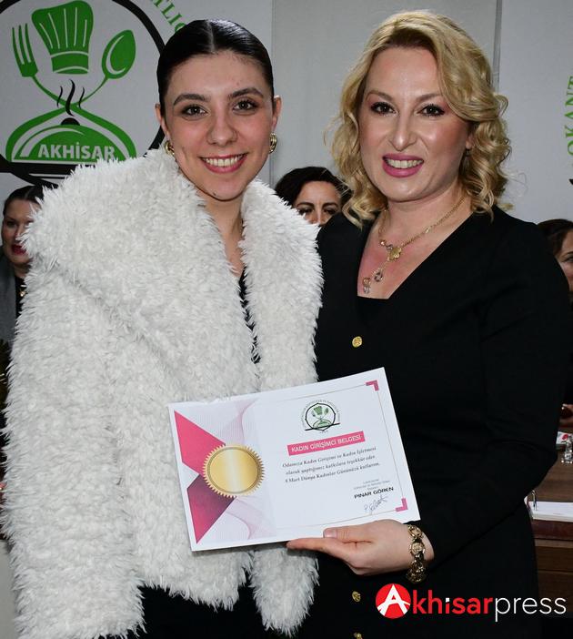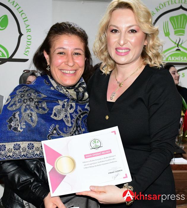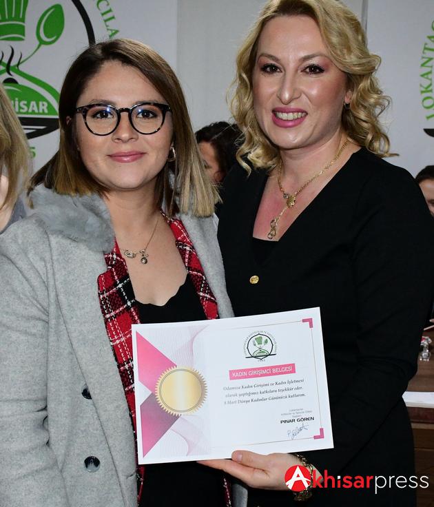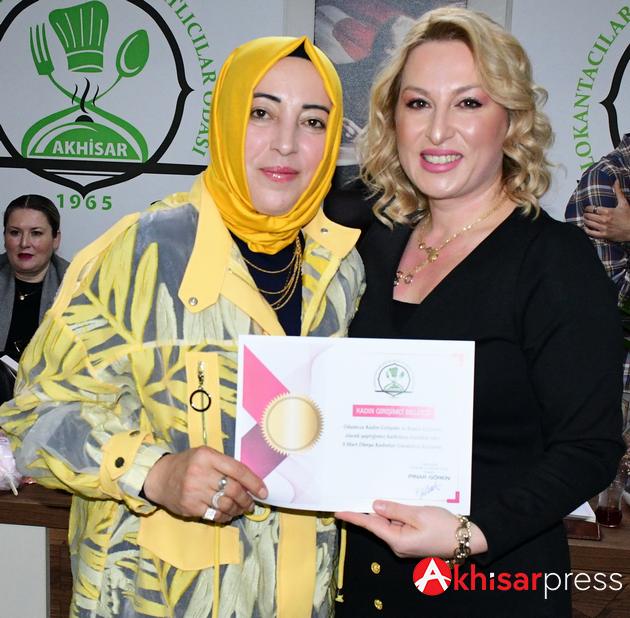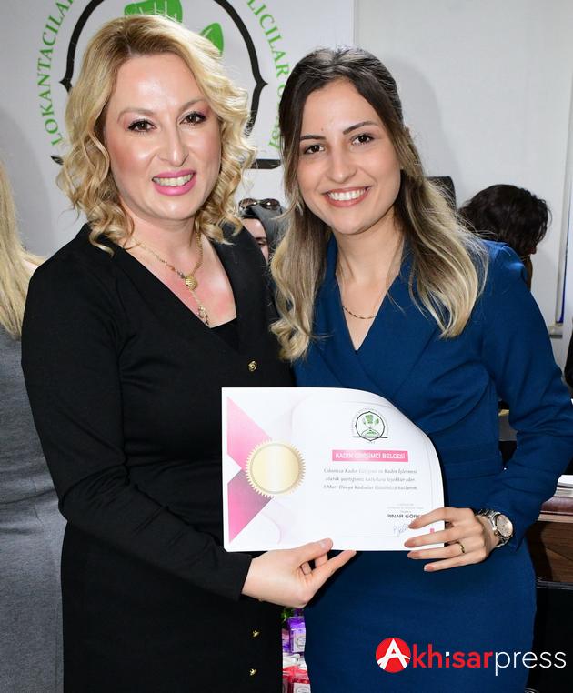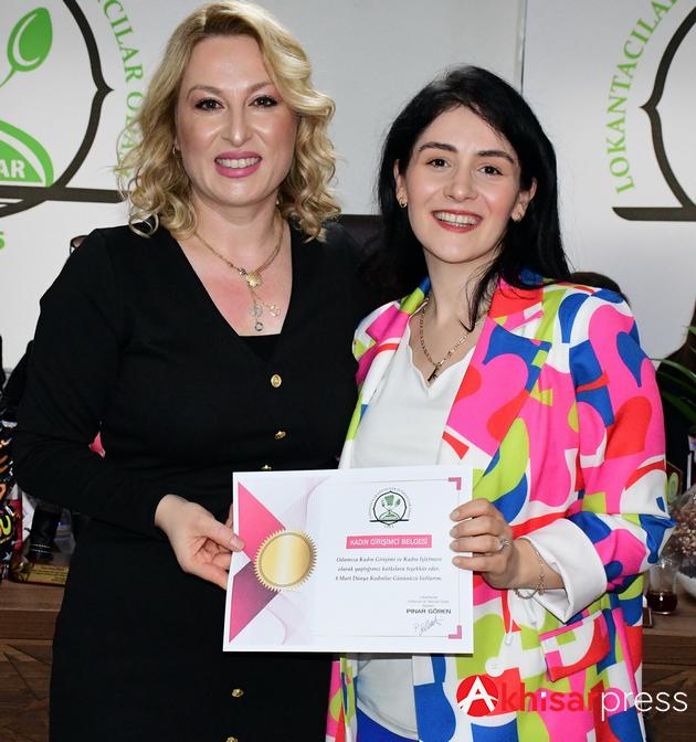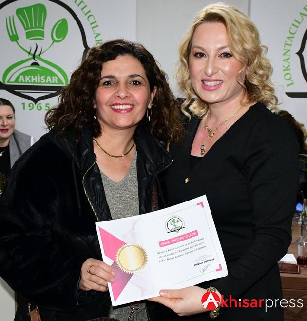 Akhisar Lokantacılar, Köfteciler, Tatlıcılar Odası Başkanı ve TESK (Türkiye Esnaf ve Sanatkârlar Konfederasyonu) Kadın Esnaf Kurulu Üyesi Pınar Gören, 8 Mart Dünya Kadınlar gününde Oda Lokalinde yaklaşık 150 kadın esnafa girişimcilik belgesi ve hediyeler takdim ederek kadınlar gününü kutladı.